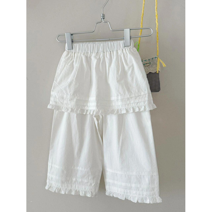 韓系童裝女童屁簾褲子夏季兒童薄款防蚊褲寶寶超好看白色直筒褲