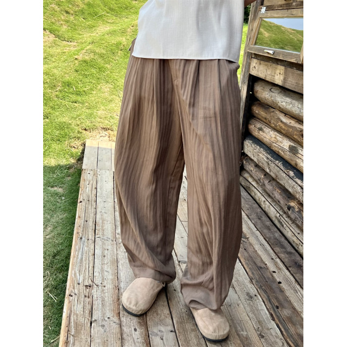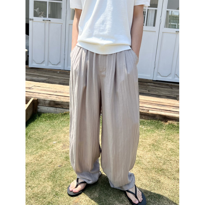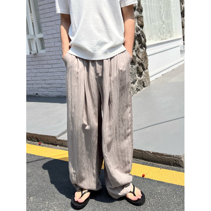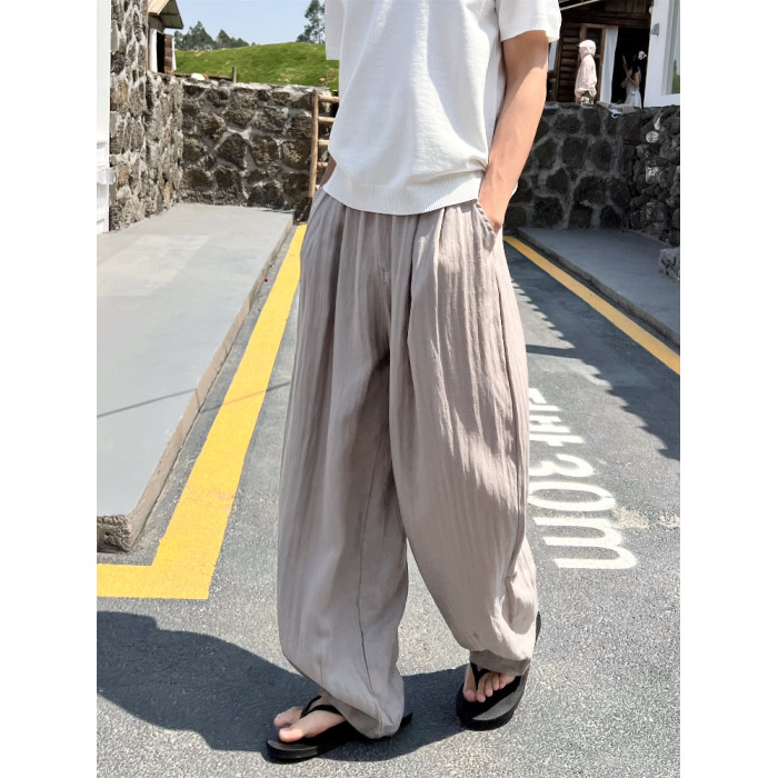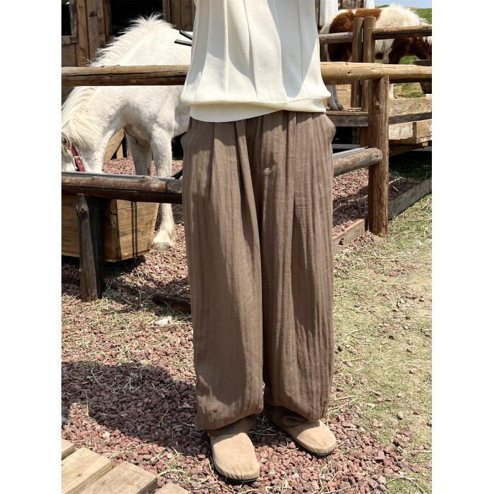 乜Q法式老錢風棉麻慵懶休閒長褲男復古休閒百搭戶外度假風濶腿褲