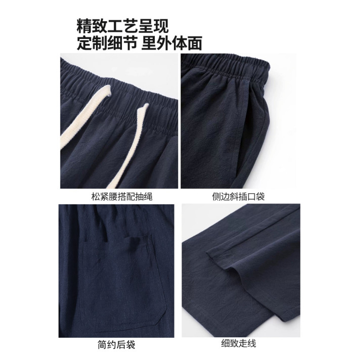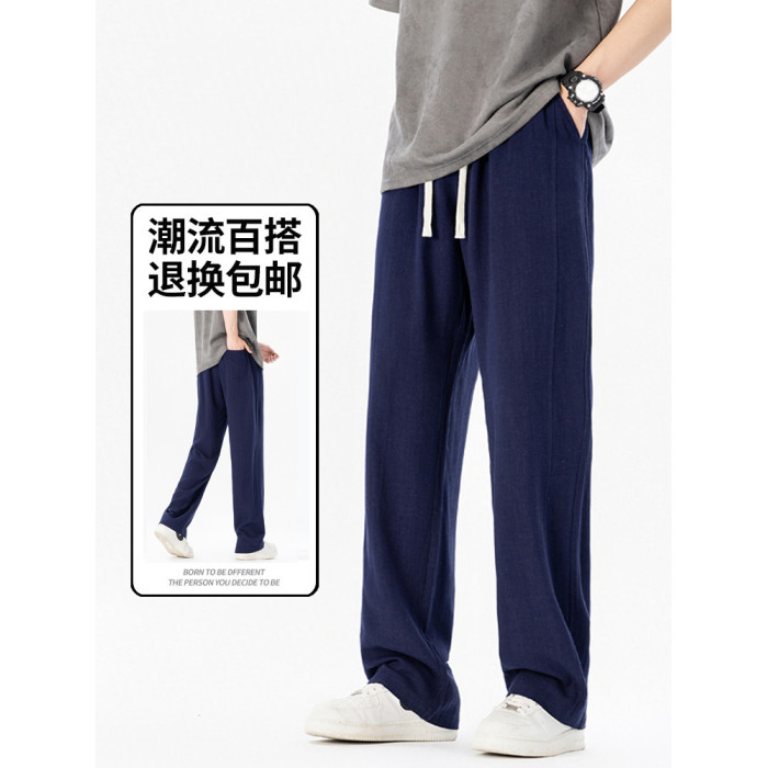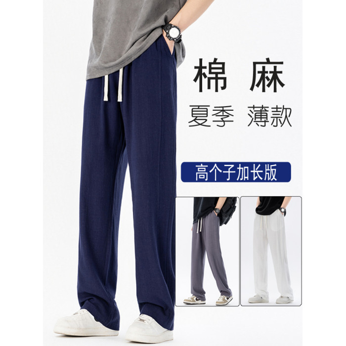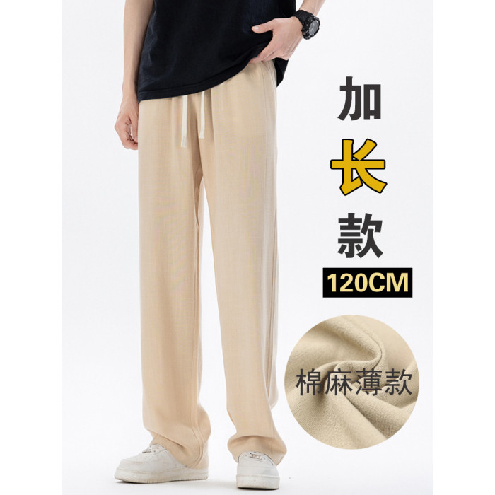 男高個子加長棉麻休閒褲寬松濶腿褲夏季薄款麻料直筒長褲子120cm
