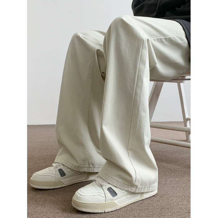 AMGX米白色休閒褲男2025新款cleanfit風寬松垂感美式直筒濶腿褲子