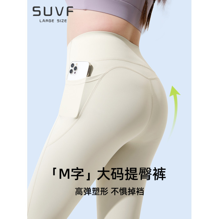 大碼九分口袋瑜伽褲女春夏季薄款胖mm200斤高彈塑形運動褲健身褲