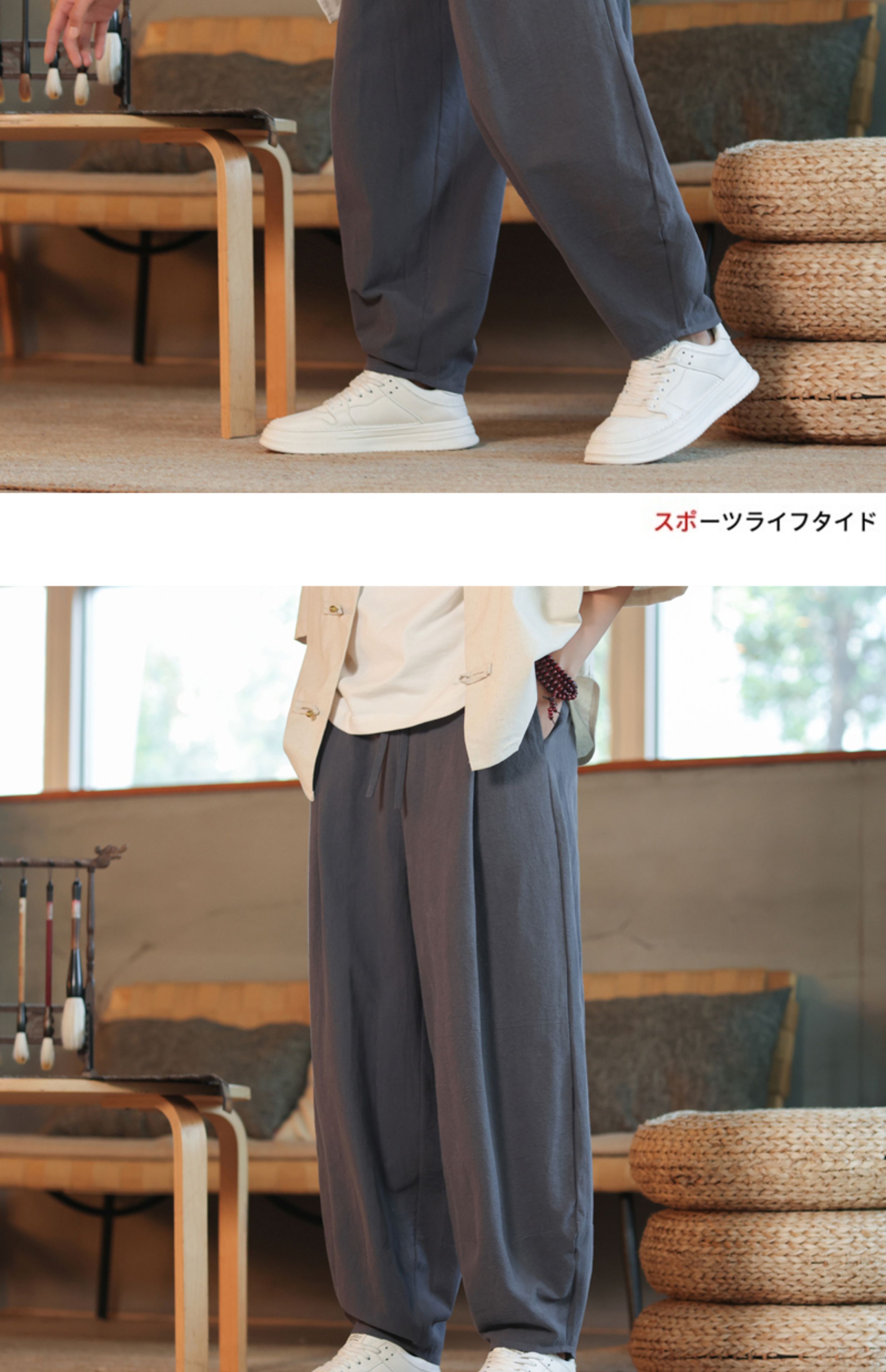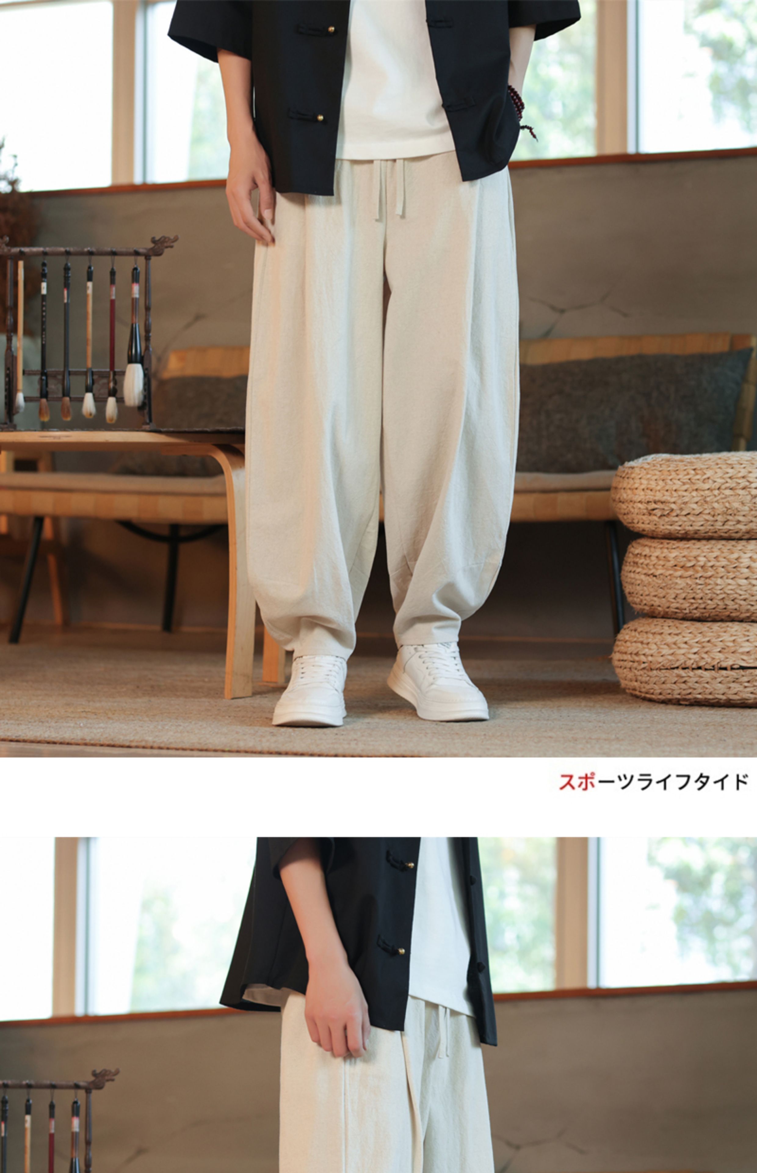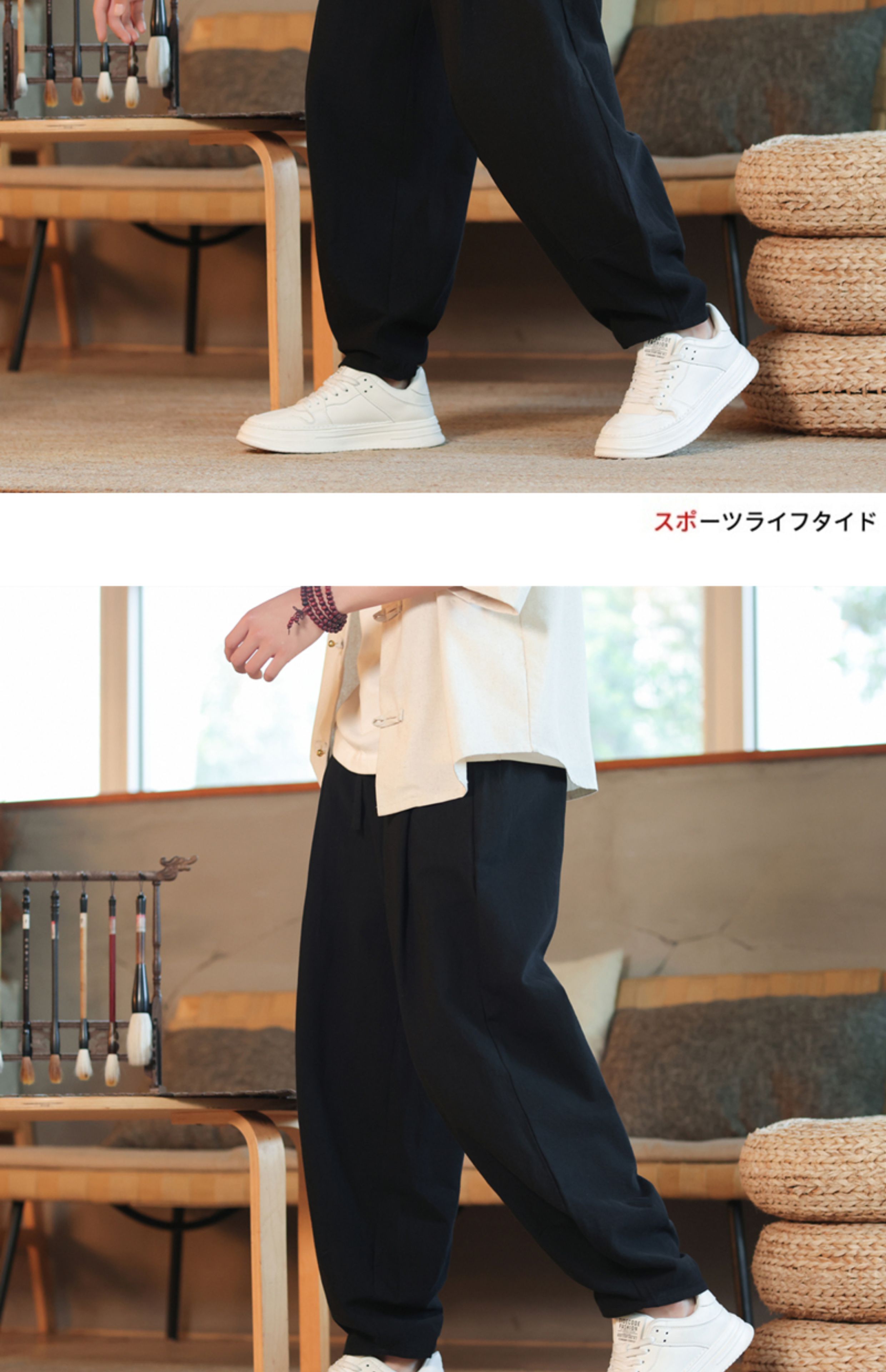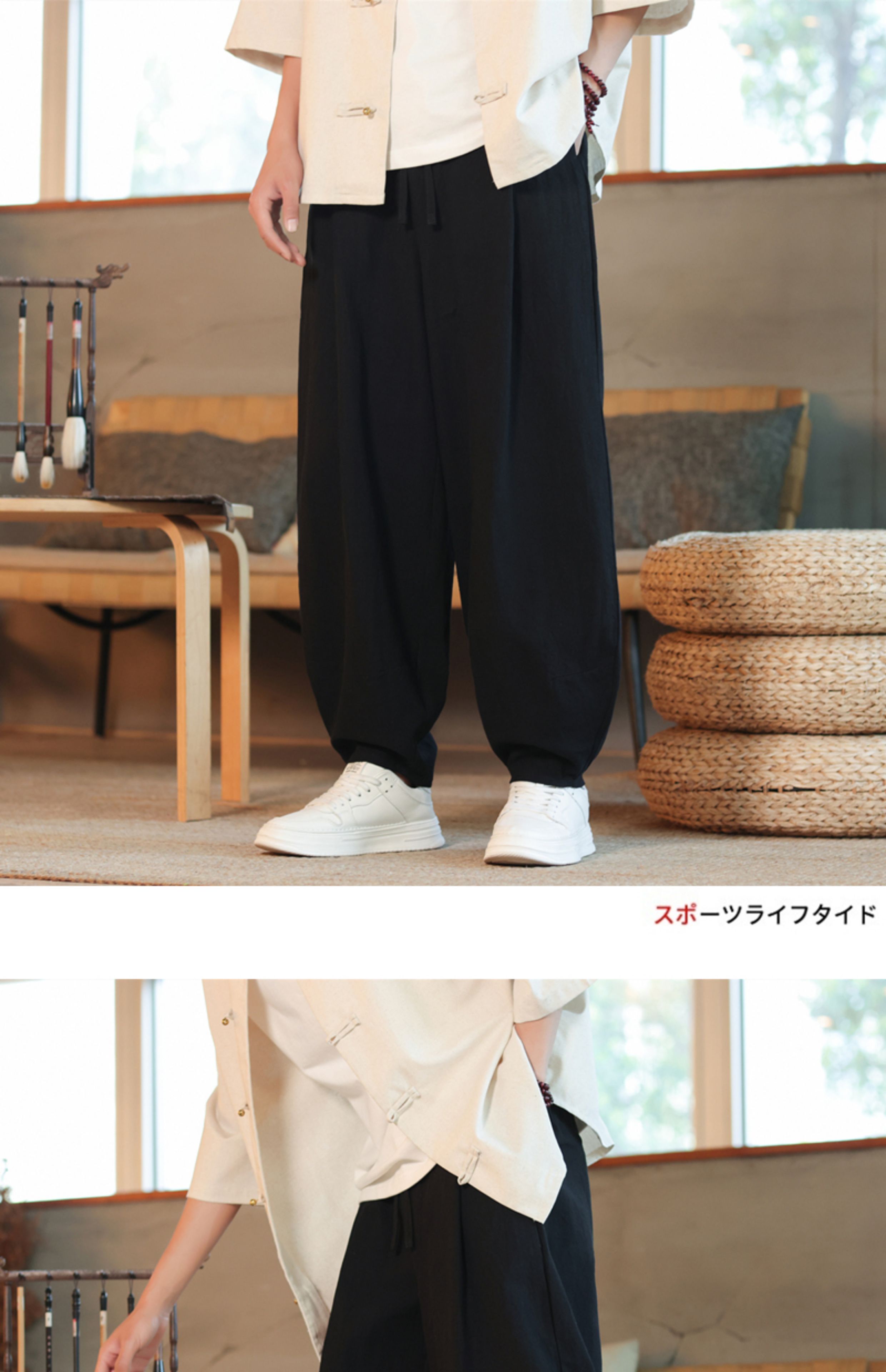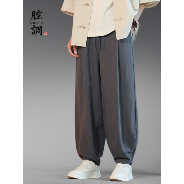 夏季中式休閒褲風男士純棉濶腿褲彎刀褲練功太極褲漢服燈籠褲