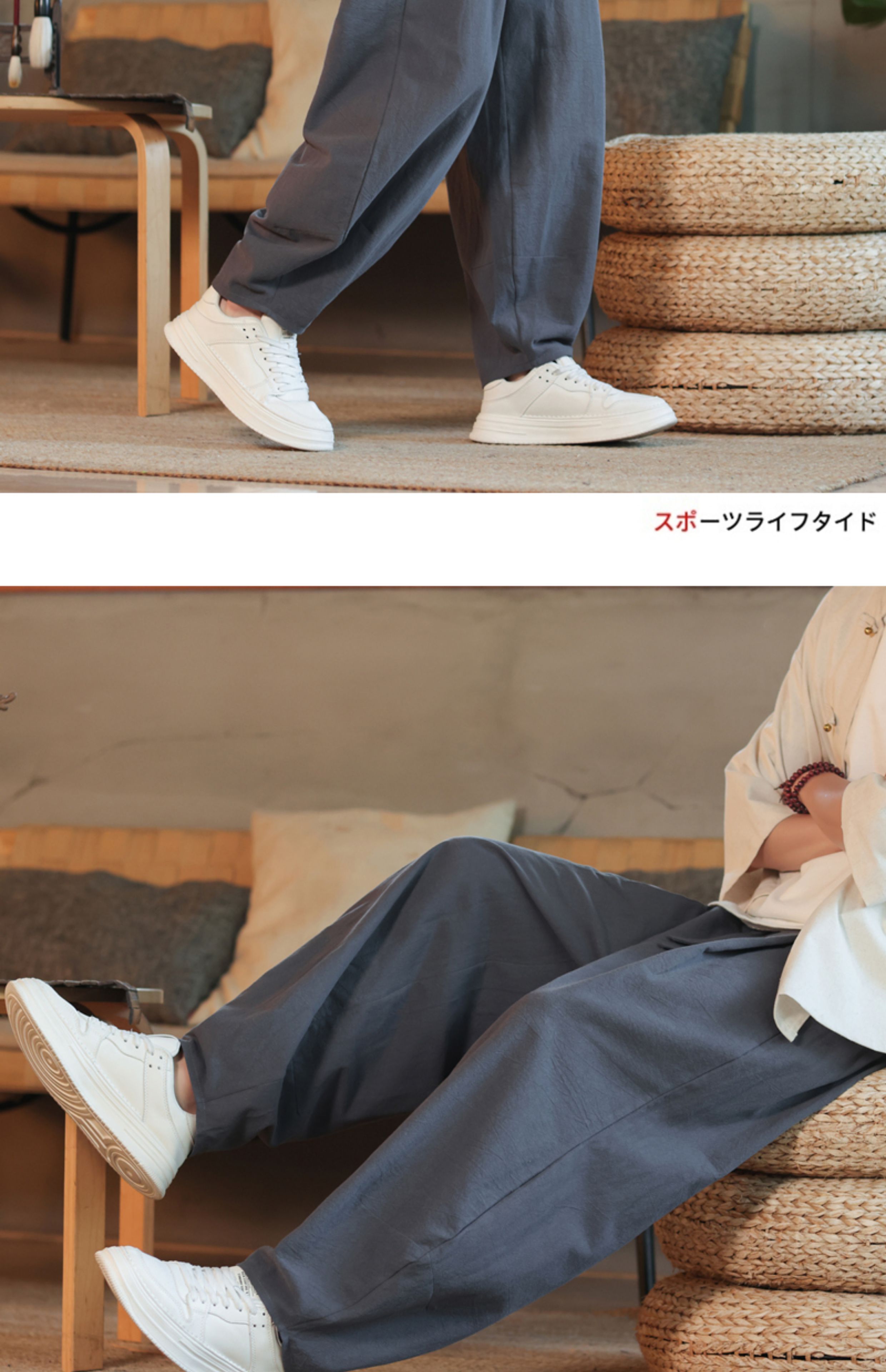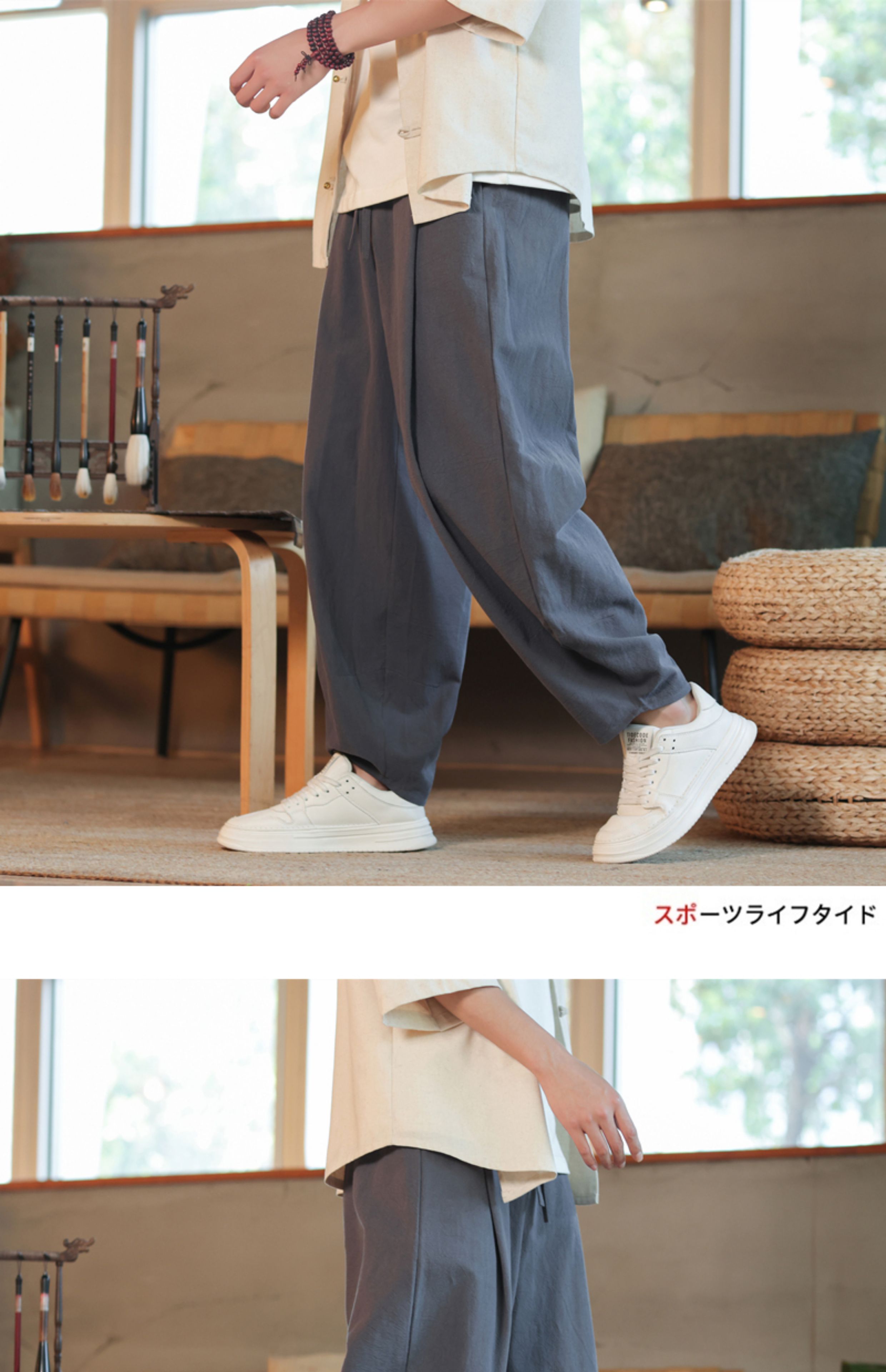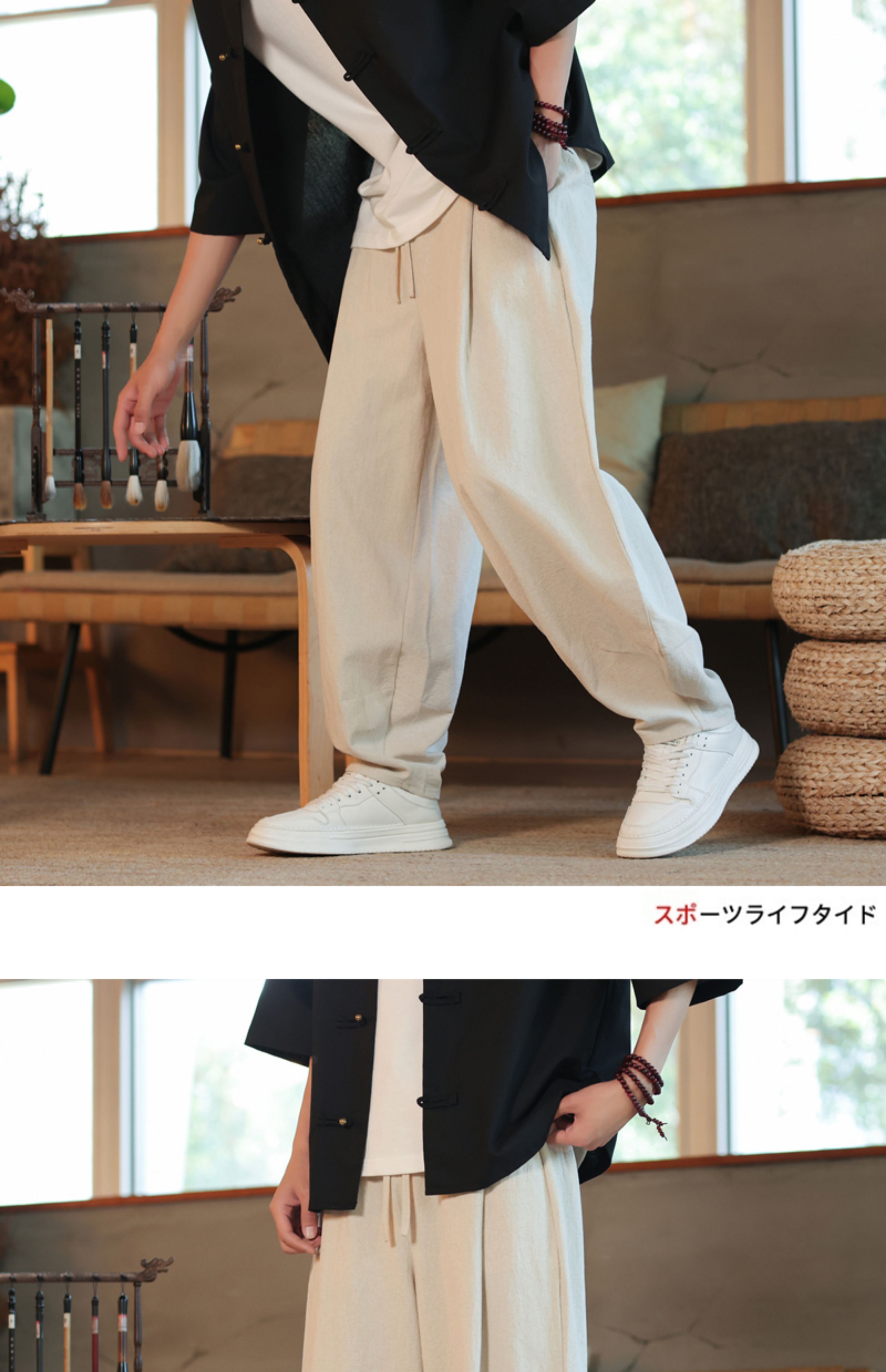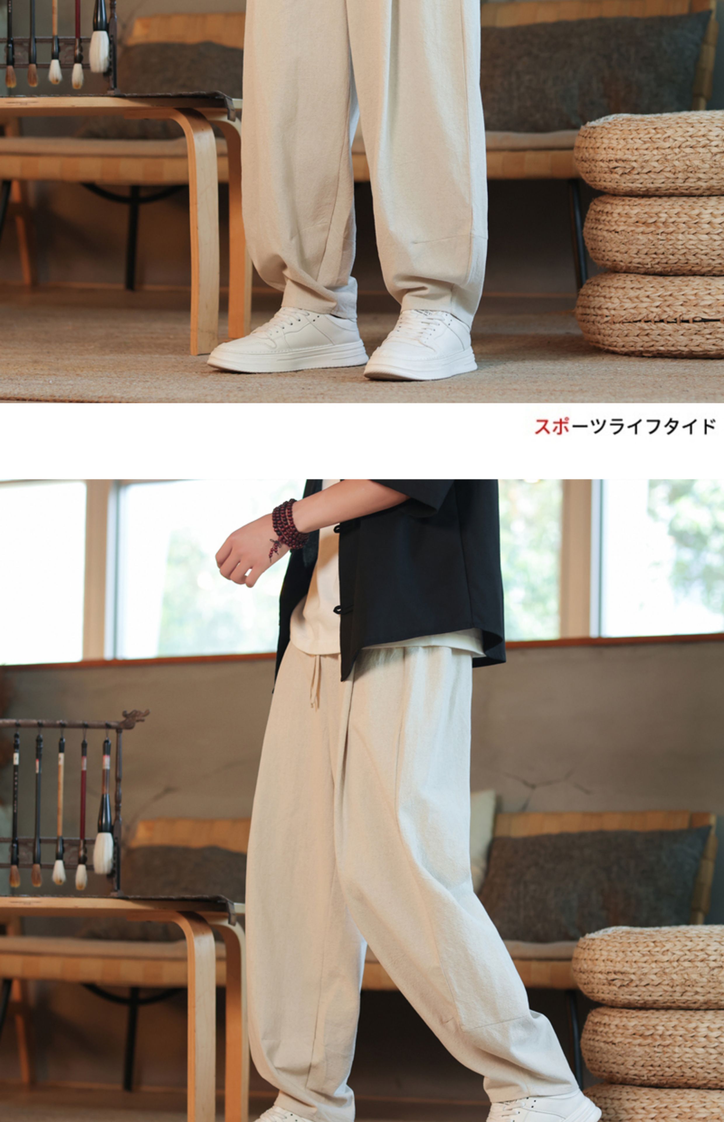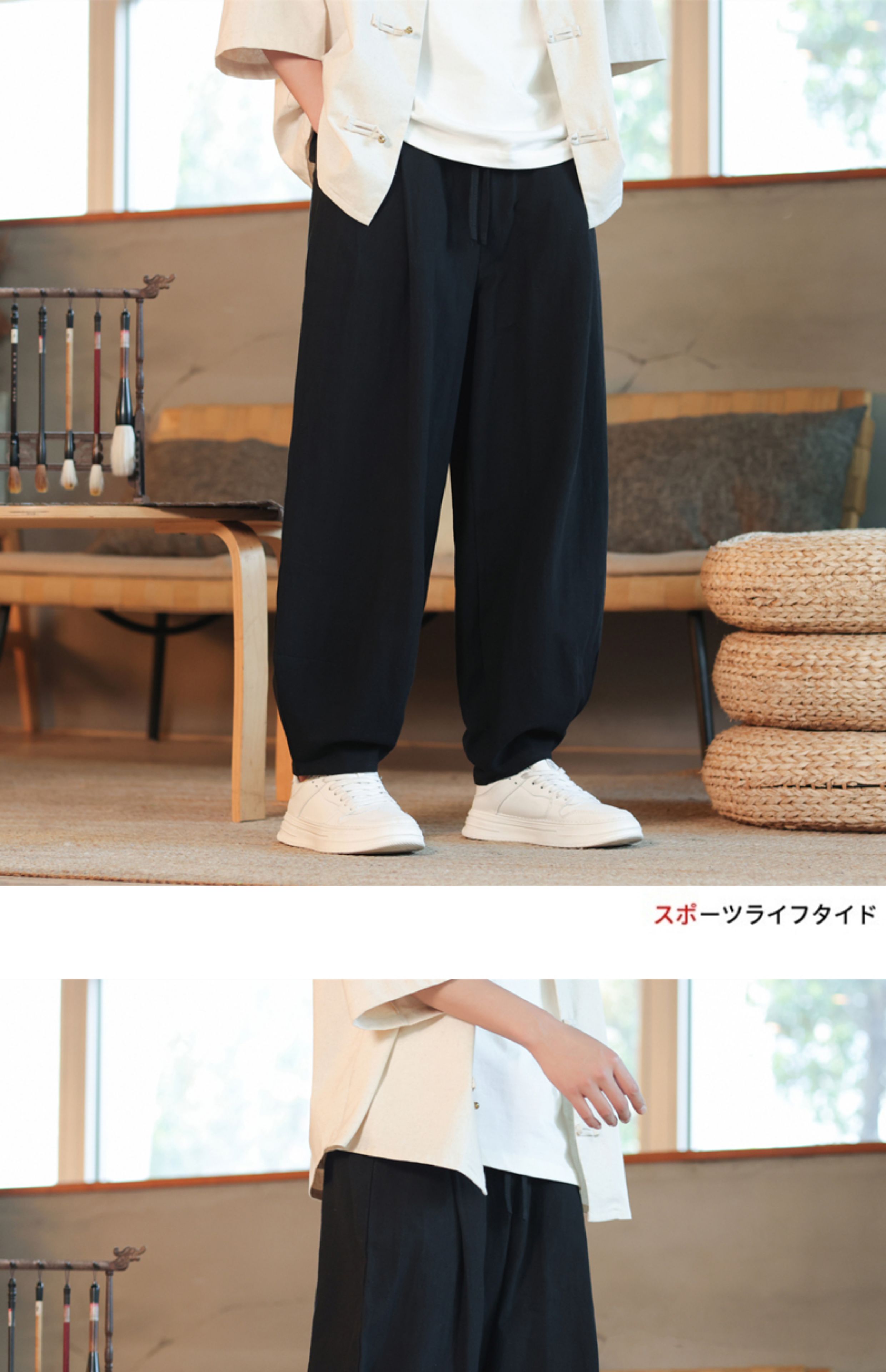 夏季中式休閒褲風男士純棉濶腿褲彎刀褲練功太極褲漢服燈籠褲