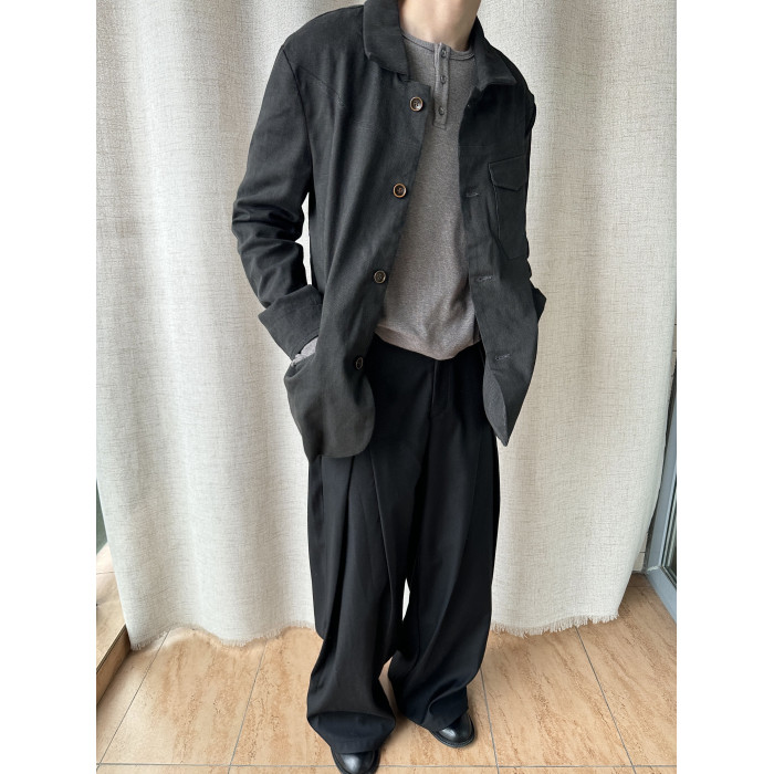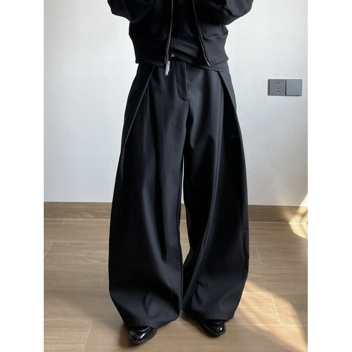 春秋美式立體褶皺廓形彎刀西褲男女生寬松直筒西裝褲休閒濶腿褲男