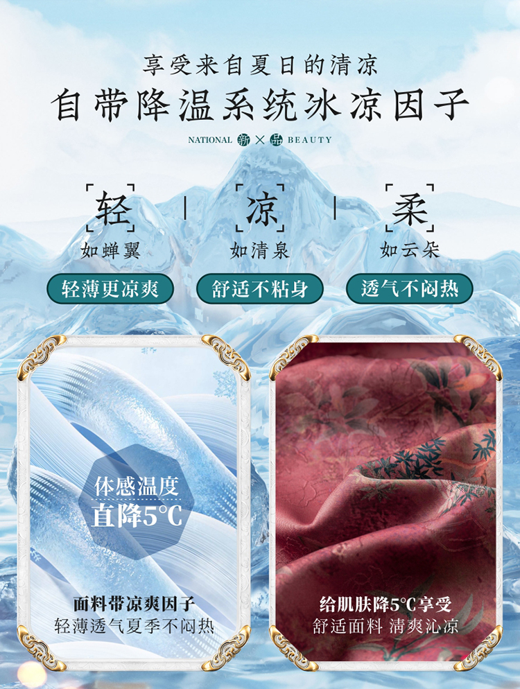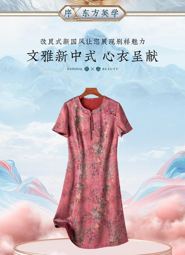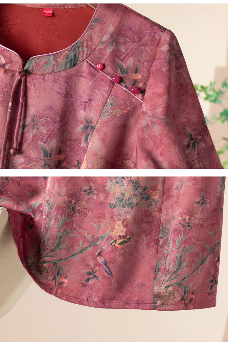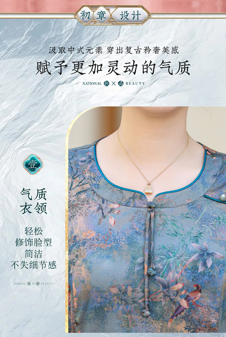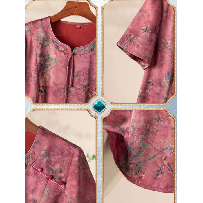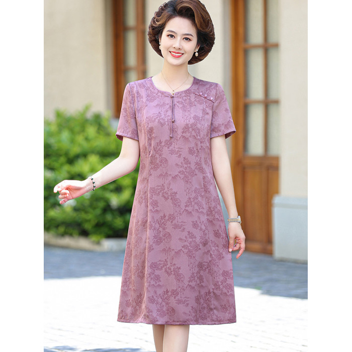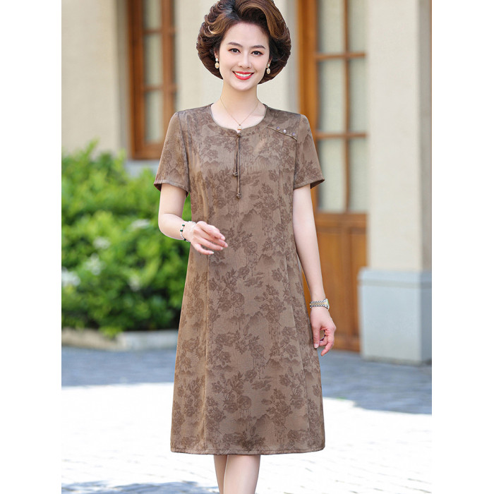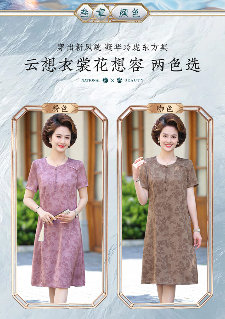 恒源祥集團彩羊中老年真絲連衣裙女夏季寬松媽媽裝薄款印花中長裙