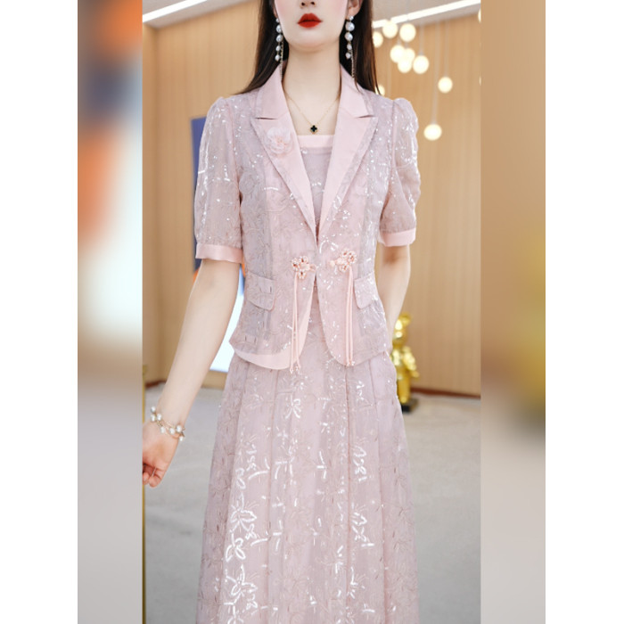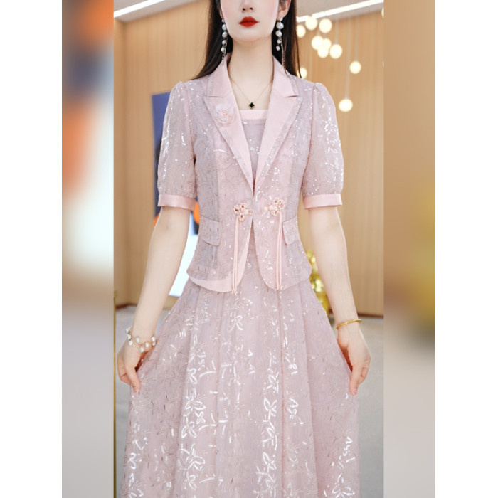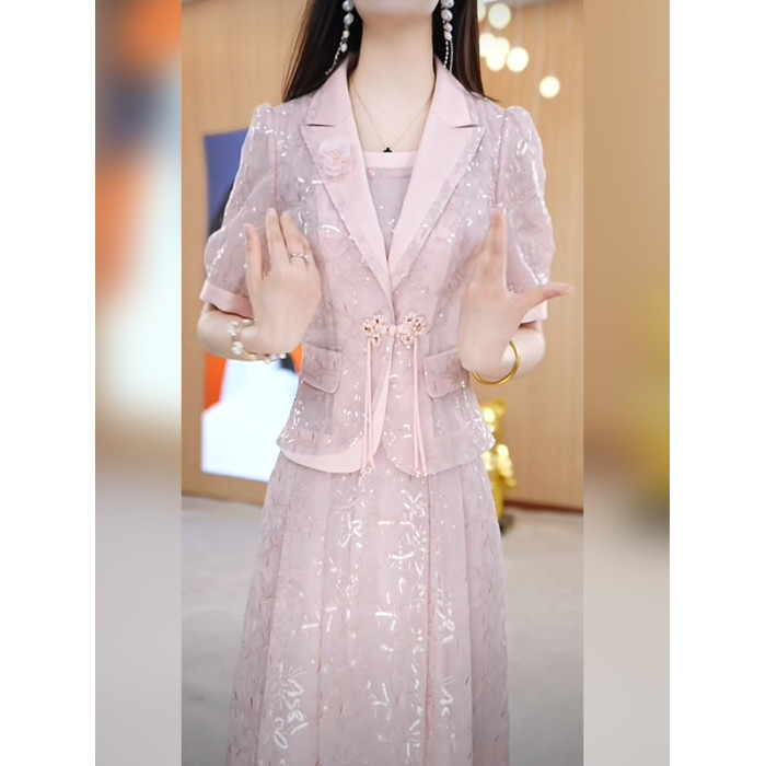 美瑞爆款西服套裝裙女2025新款夏季減齡乾練正式場合連衣裙兩件套
