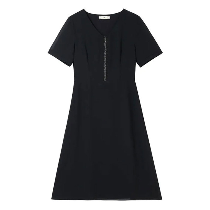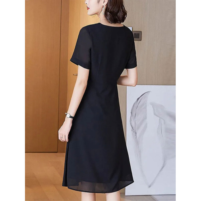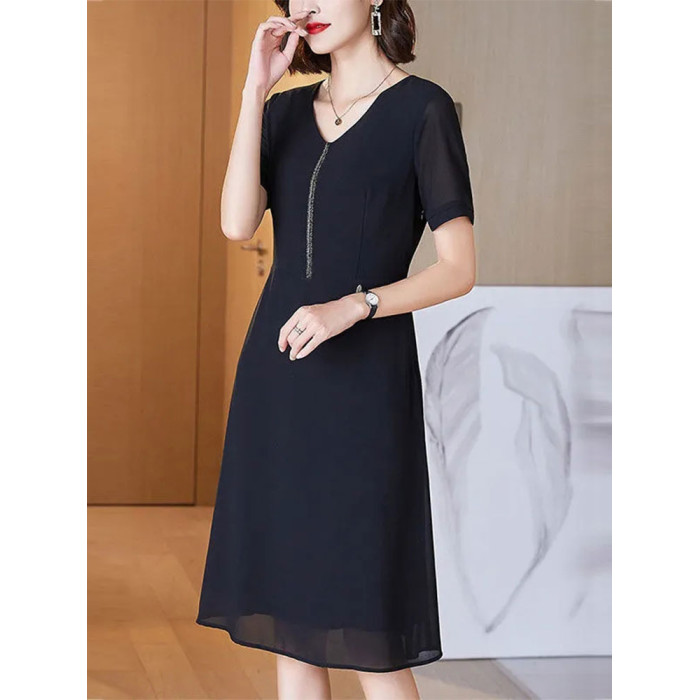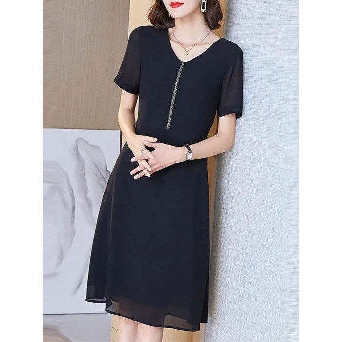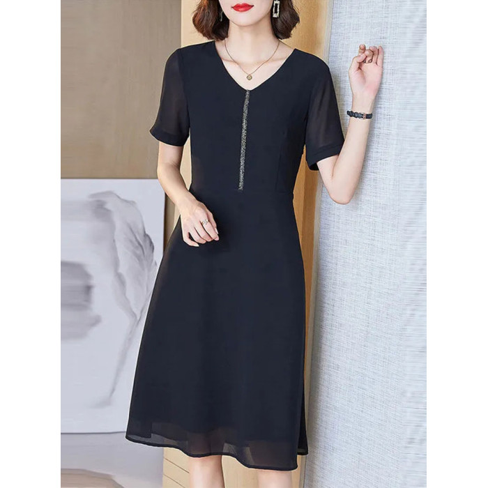 大碼女裝2025夏季新款微胖mm顯瘦連衣裙V領氣質短袖胖妹妹中長款