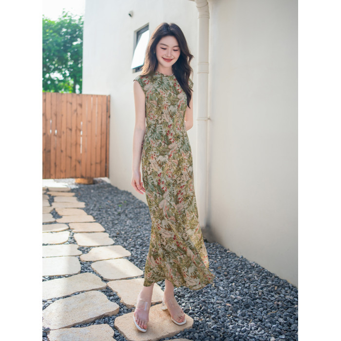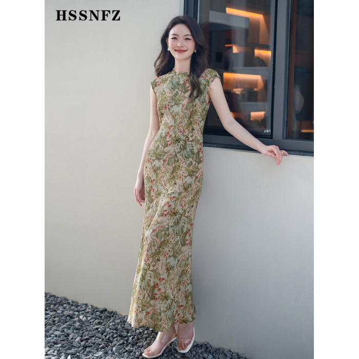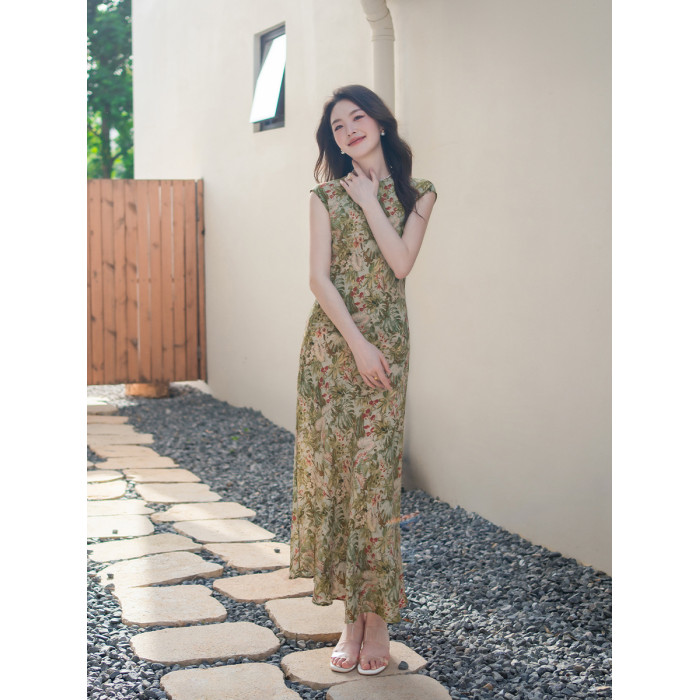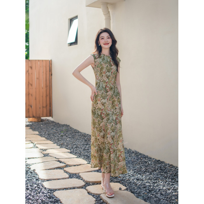 新中式改良旗袍真絲100%桑蠶絲單層曲線美感小碎花高級感連衣裙女