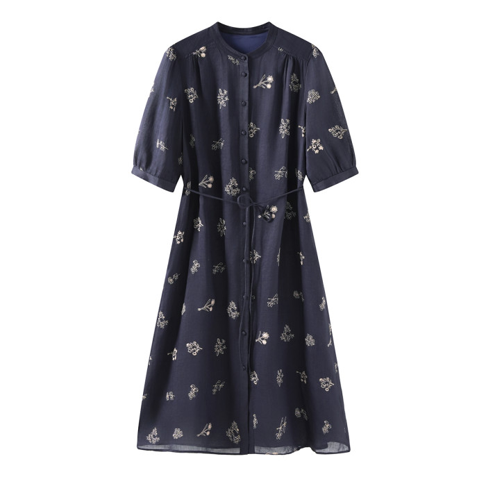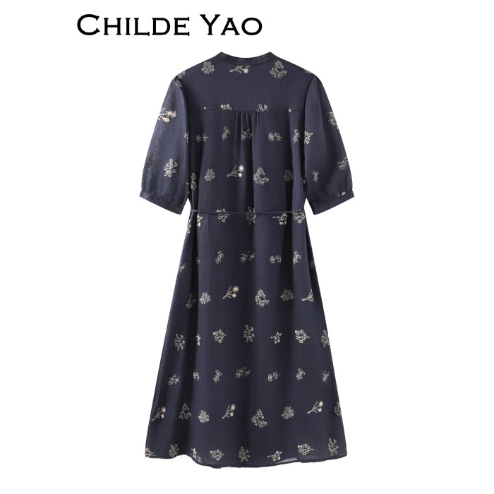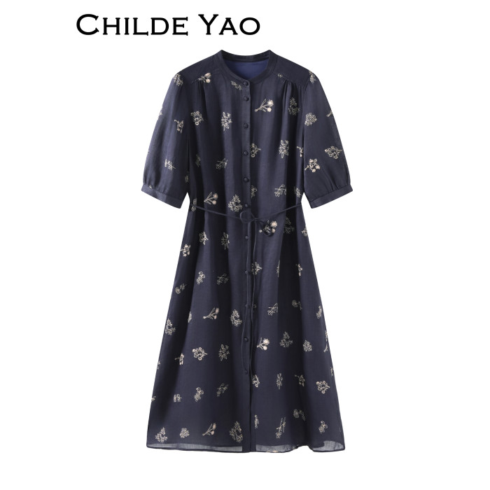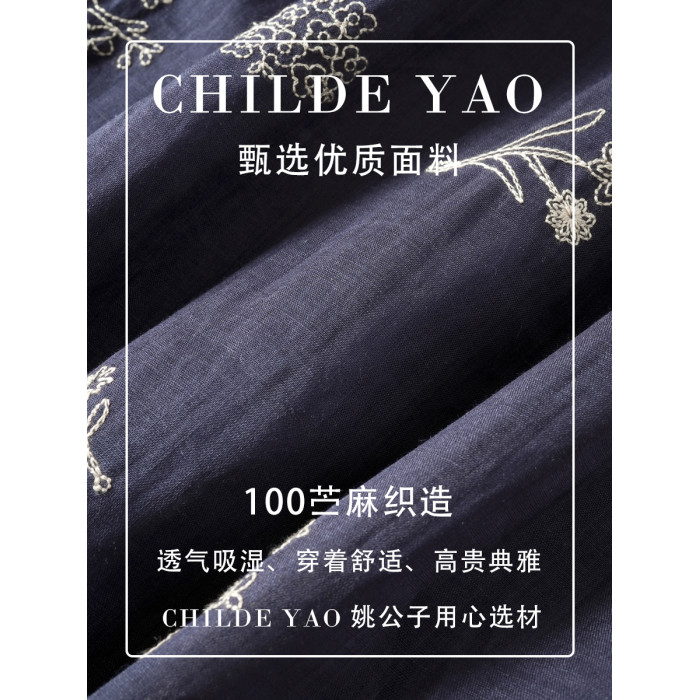 Childe Yao天然苧麻連衣裙女高級2025夏季新款刺綉輕奢高級感裙子