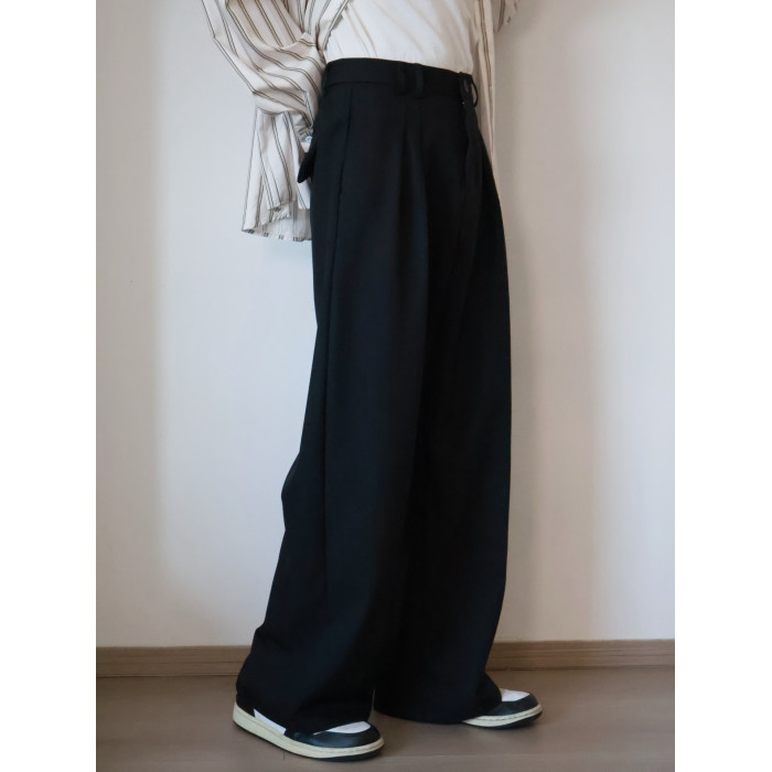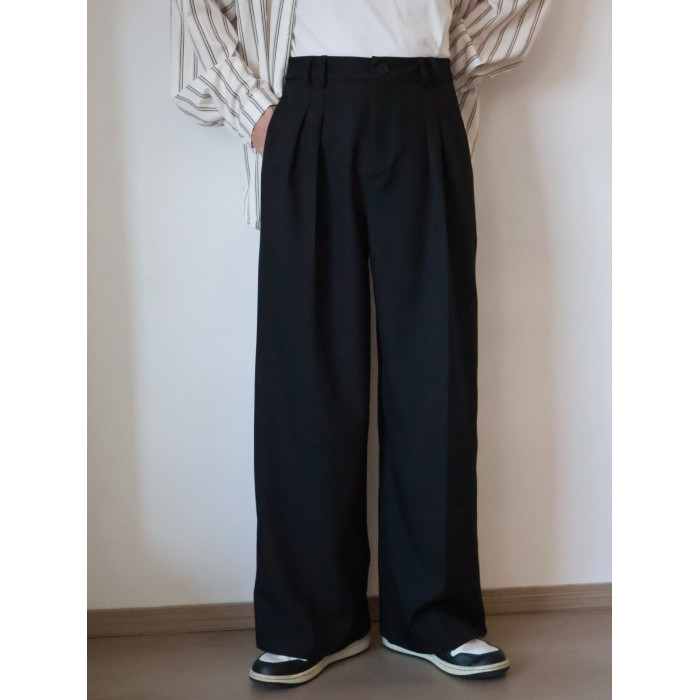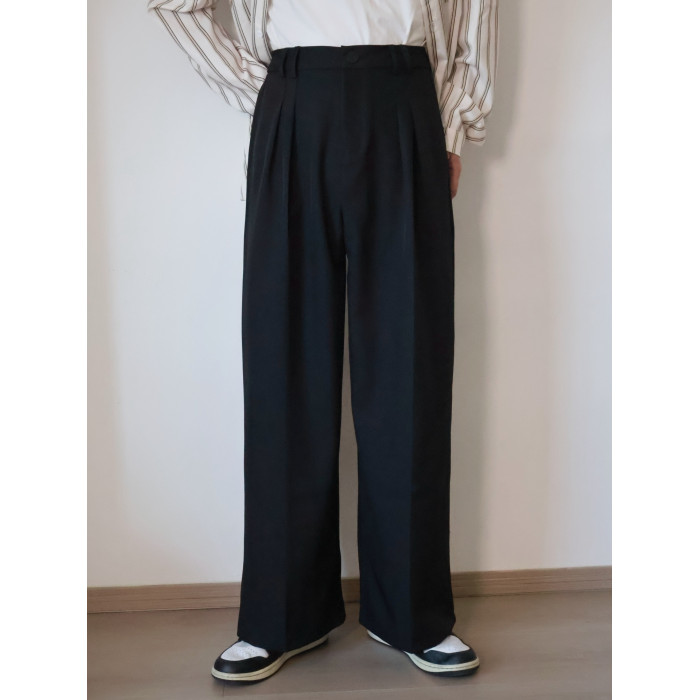YINKESEN新款黑色休閒褲男寬松直筒濶腿褲百搭垂感拖地褲高級感潮