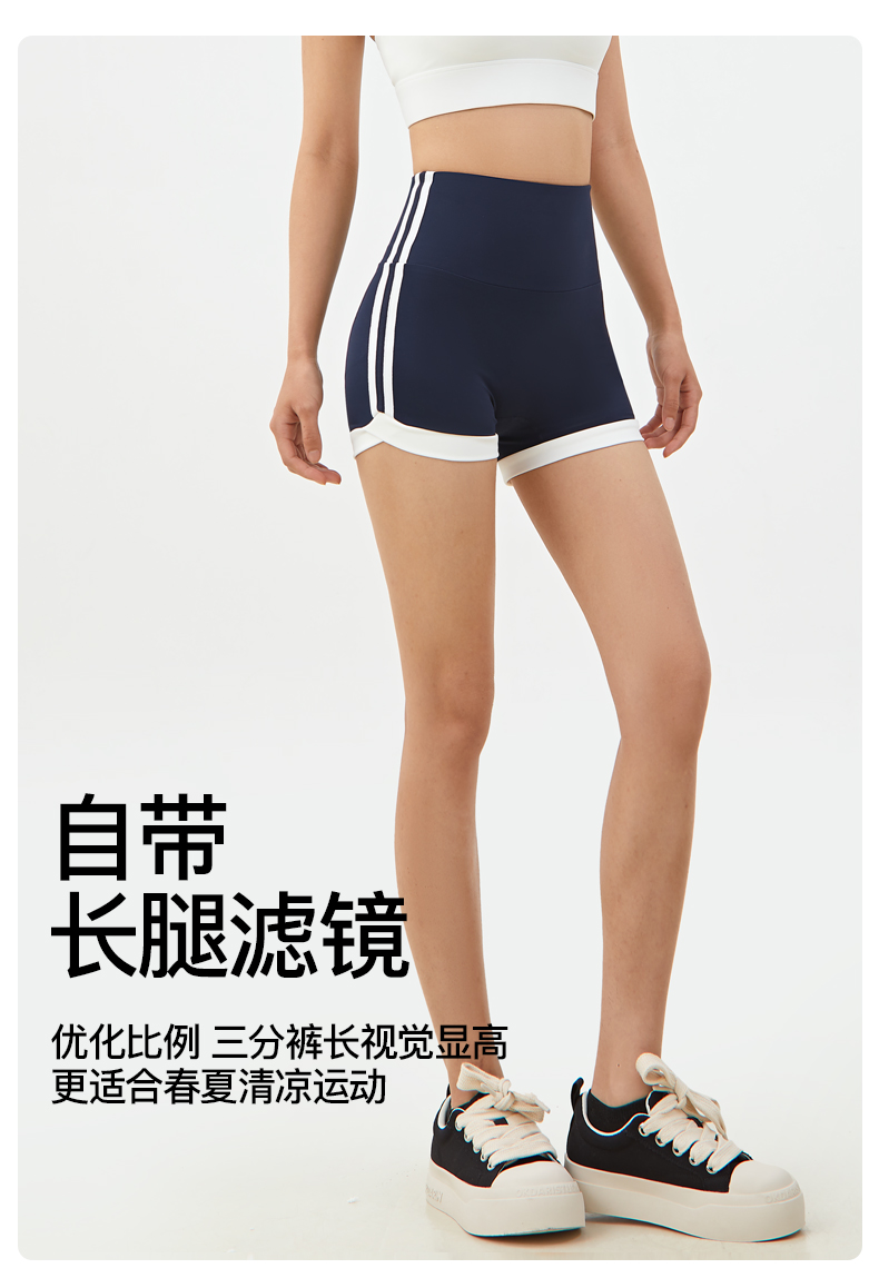 的確奇普拉提裸感運動短褲女高腰提臀戶外騎行休閒健身短褲三分褲