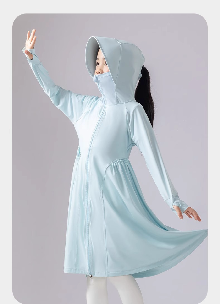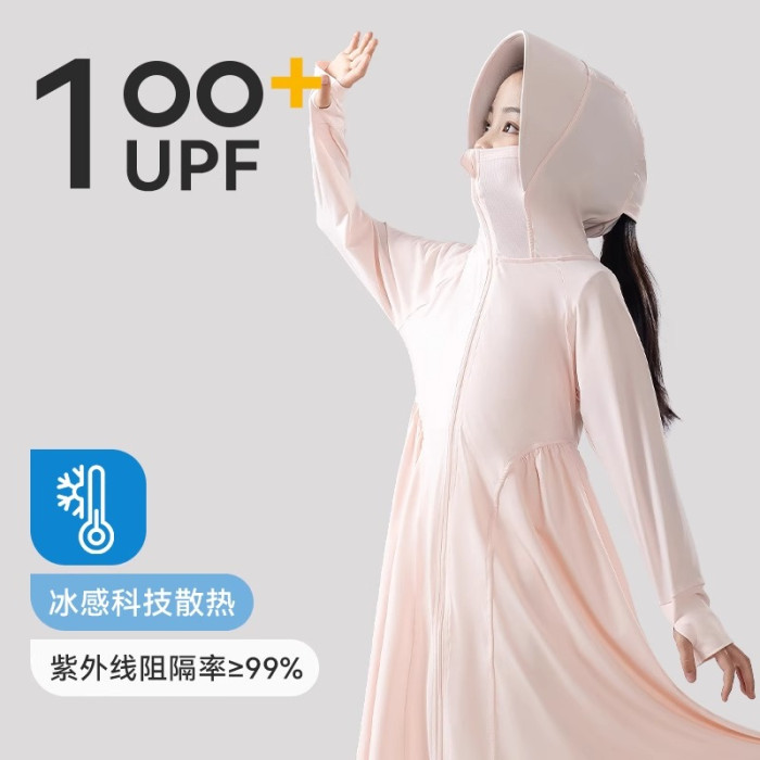 女童防曬衣中大童2025夏新款長款冰絲外套防紫外線兒童透氣防曬服
