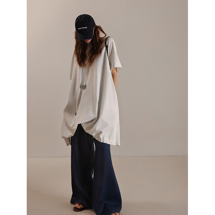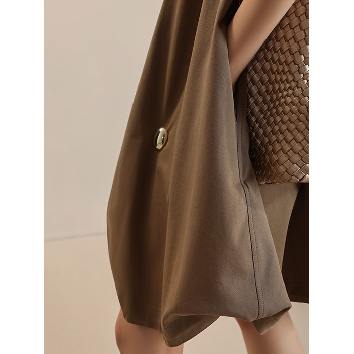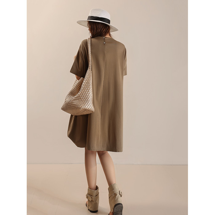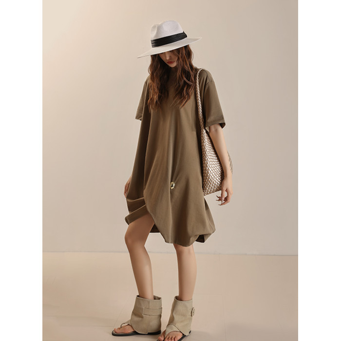 夏季女江南短袖圓領A字型釦子連衣裙短款連身裙花苞不規則MD5176