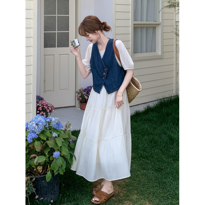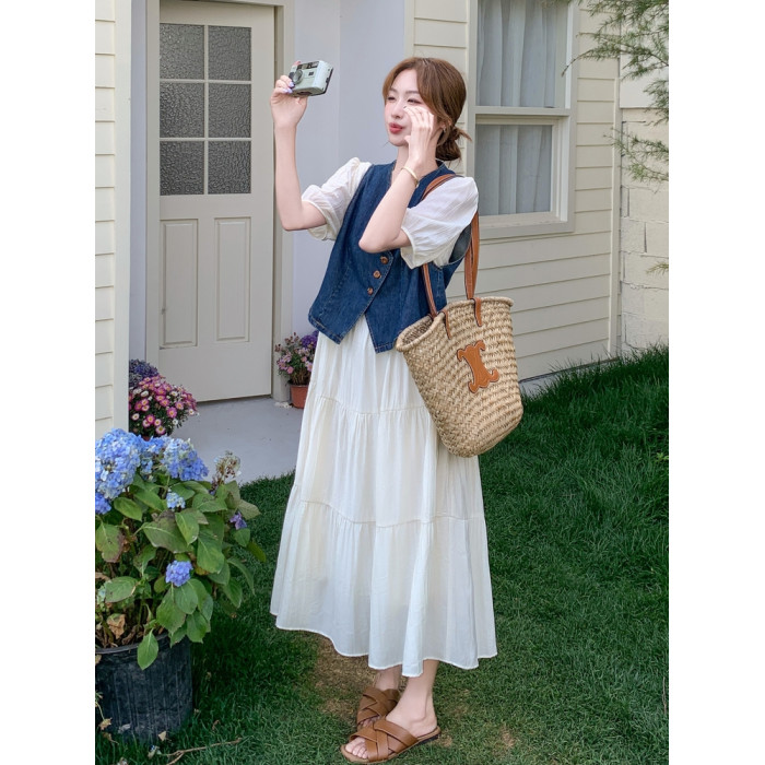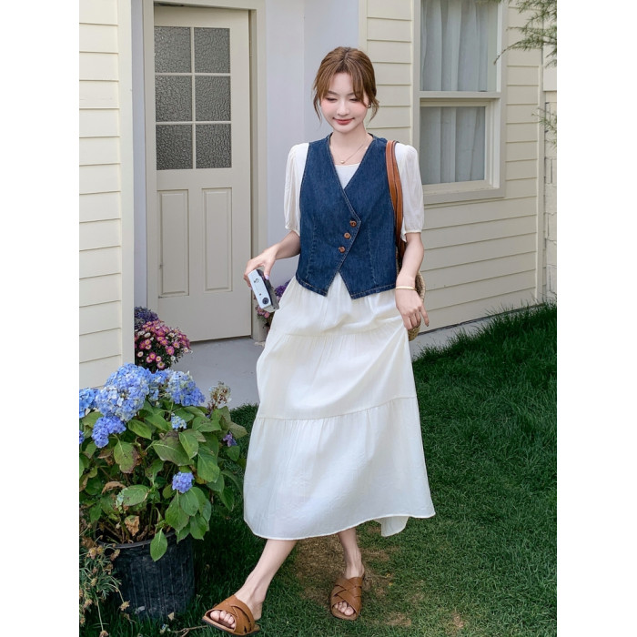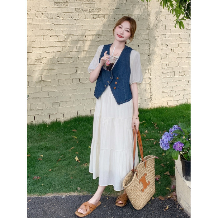 牛仔馬甲連衣裙套裝俏皮活潑2025新款高級感鹽系輕熟兩件套裝裙子