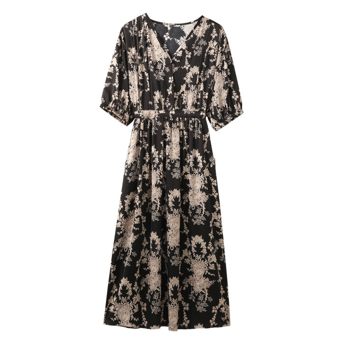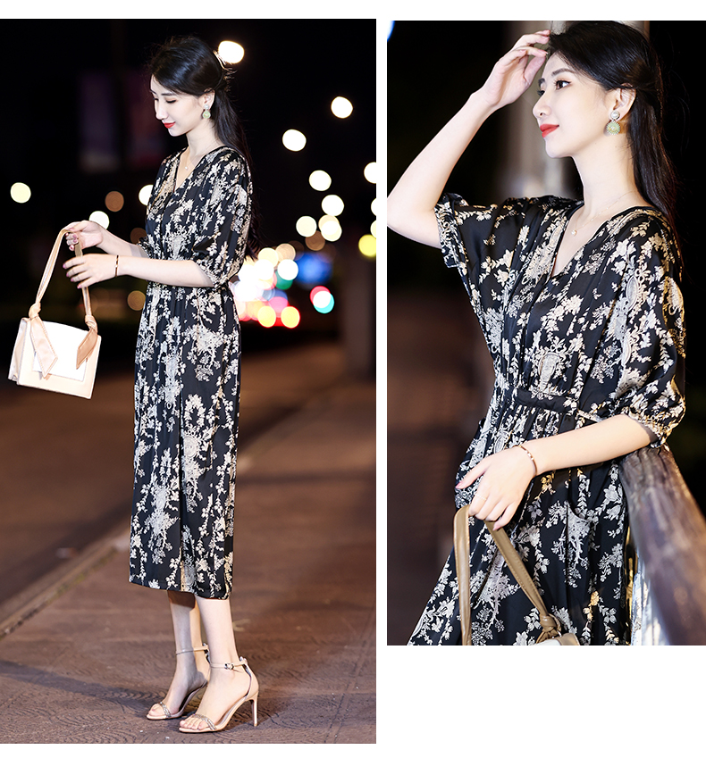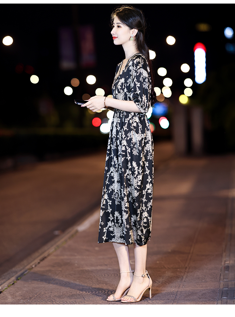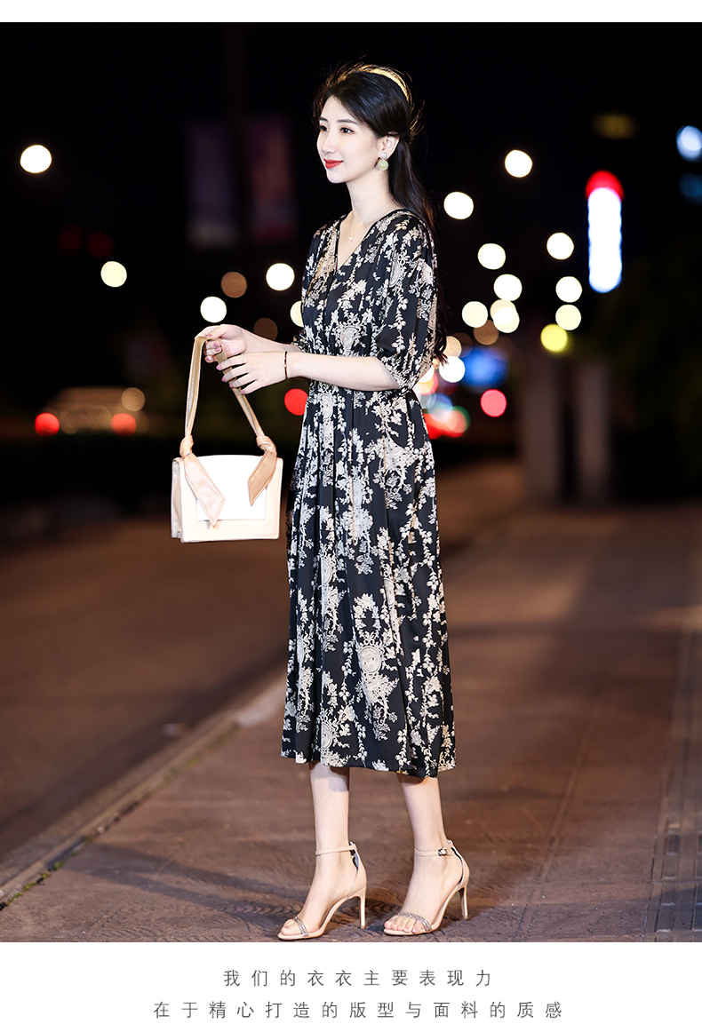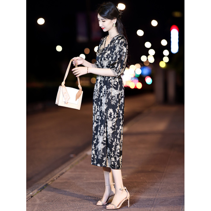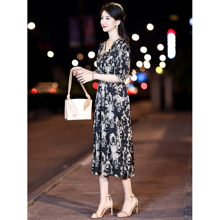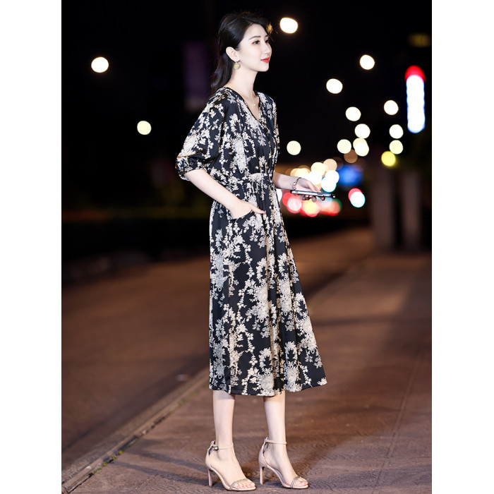 杭州真絲桑蠶絲連衣裙2025夏季新款女大碼碎花高級奢華寬松遮肚子