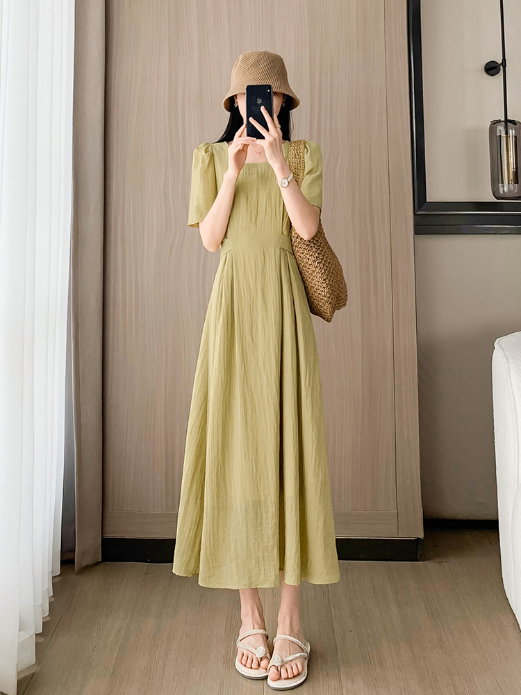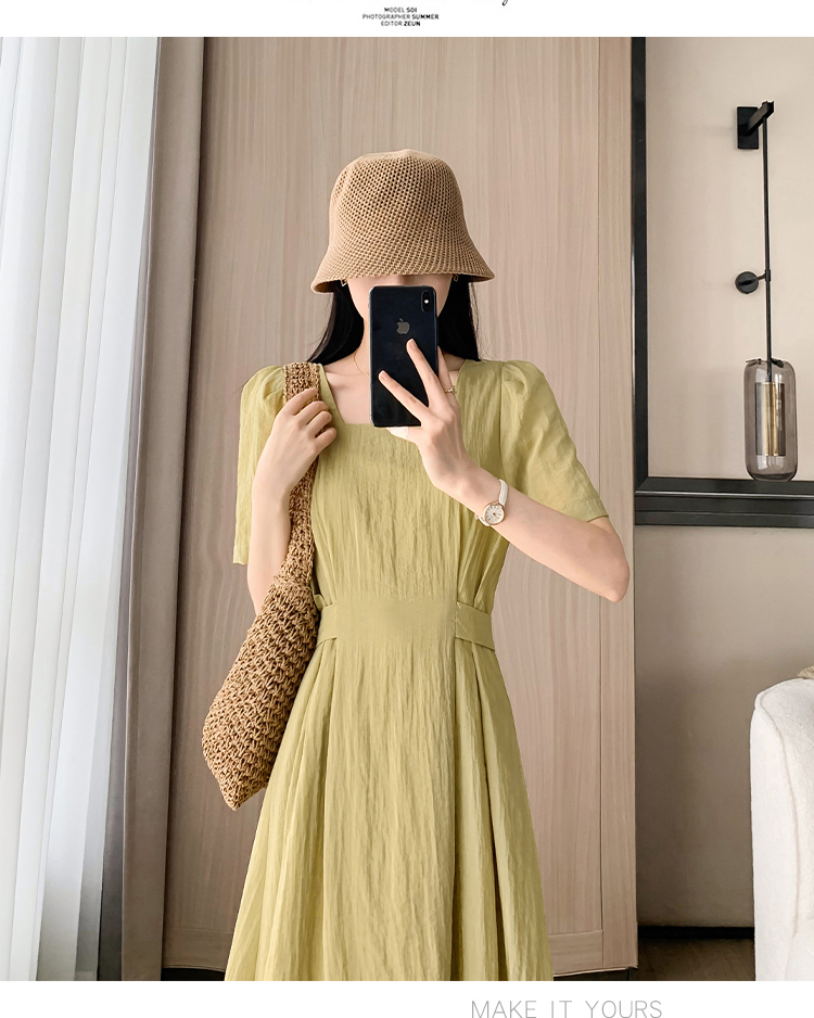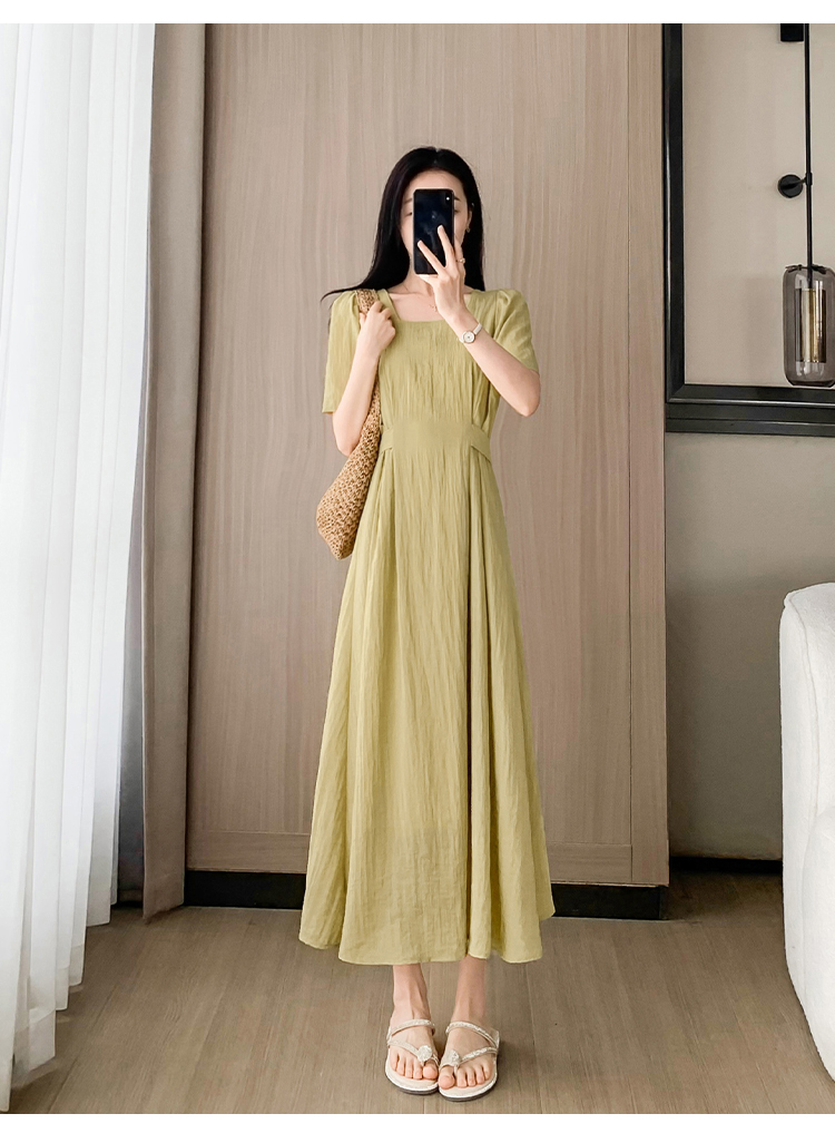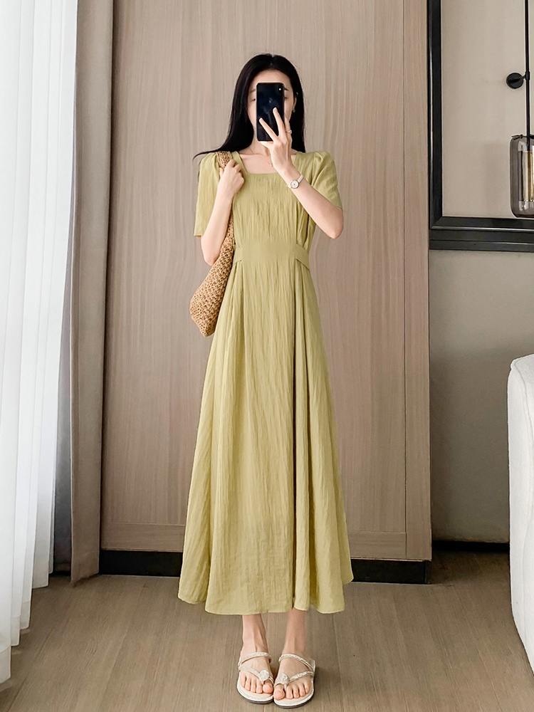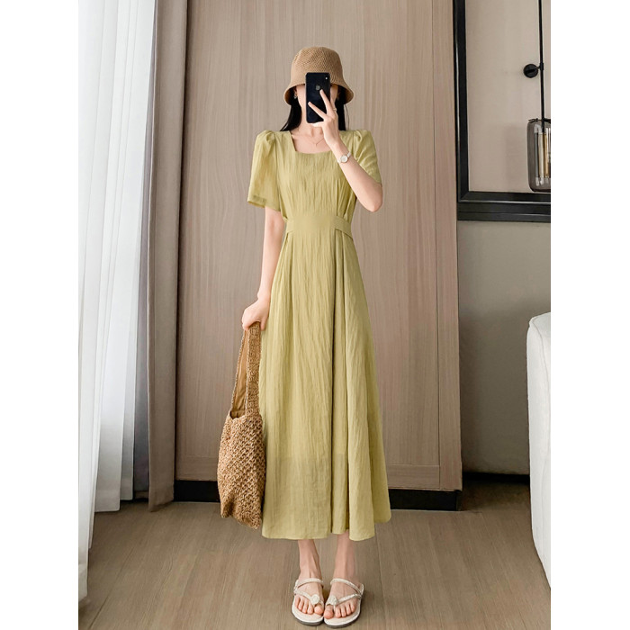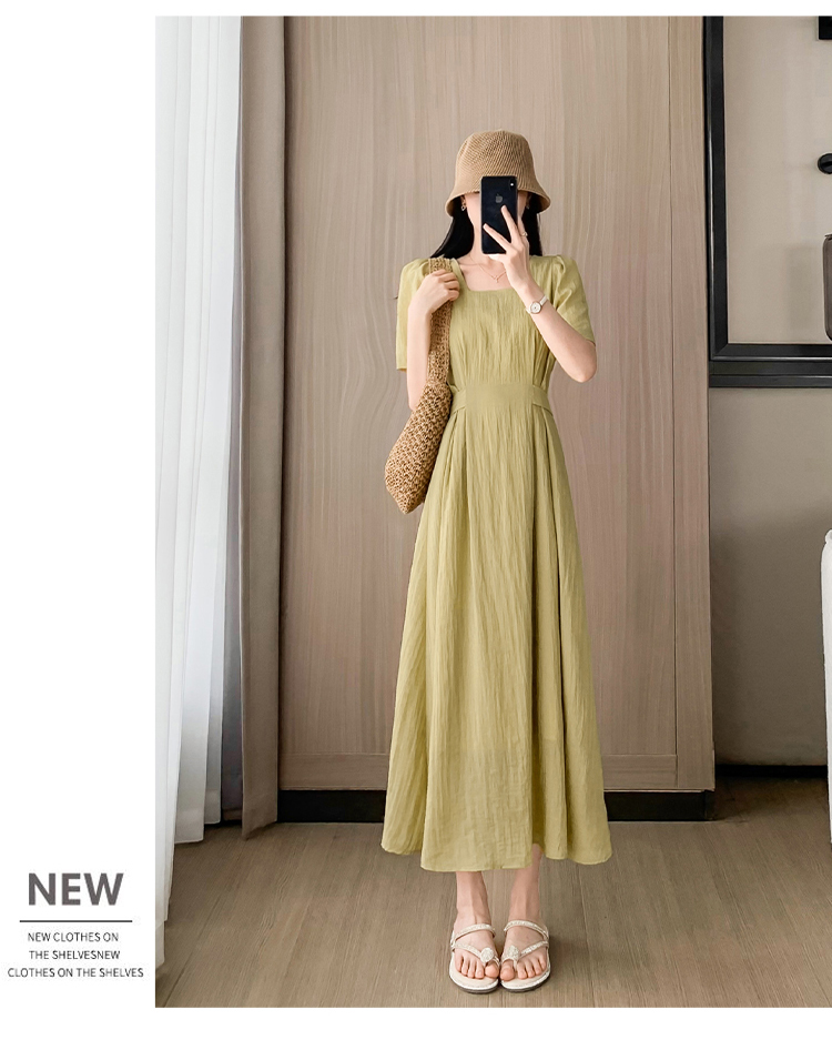 法式高級感修身連衣裙女2025新款夏季收腰顯瘦氣質遮肚子a字裙子
