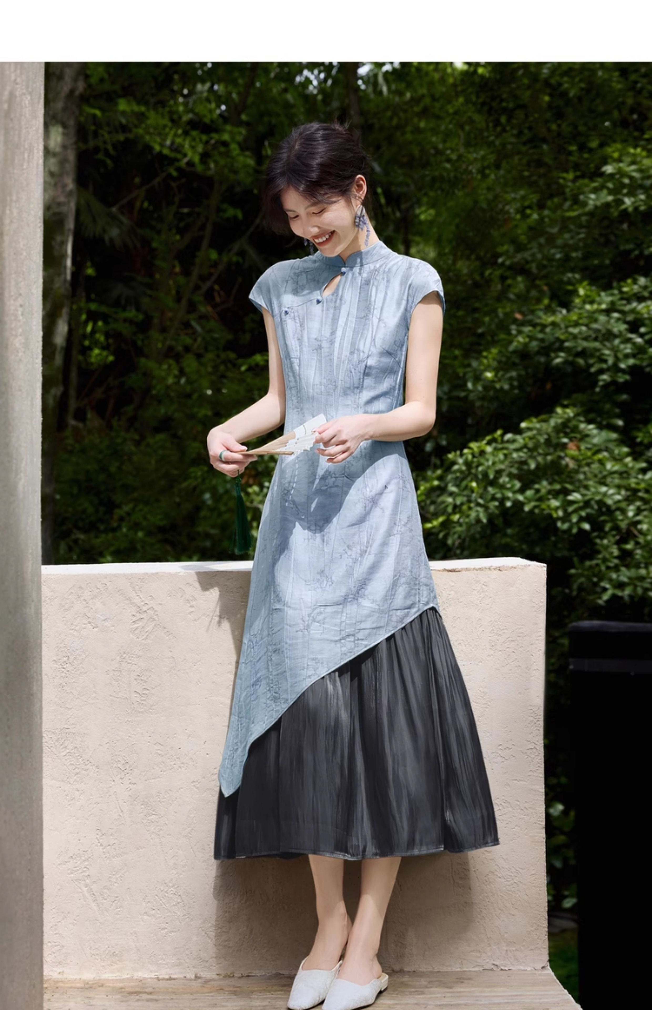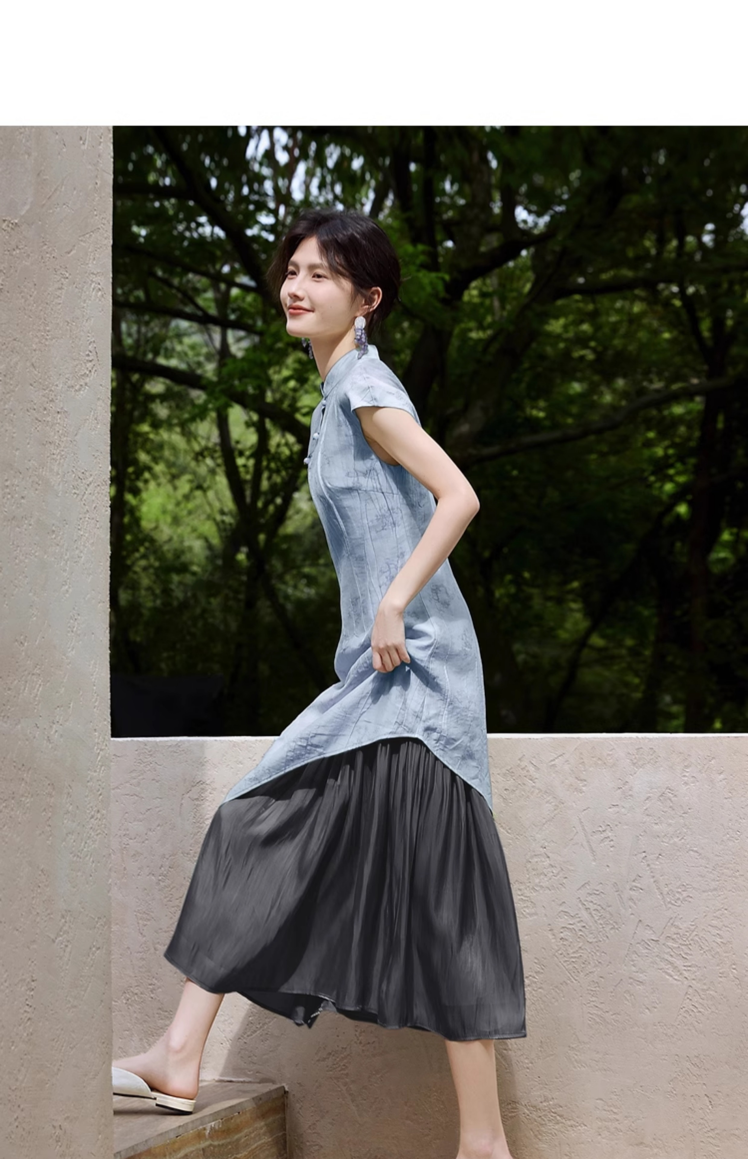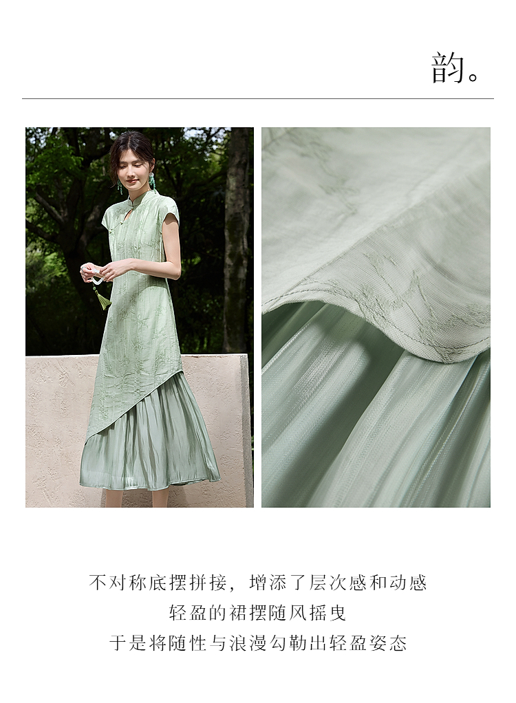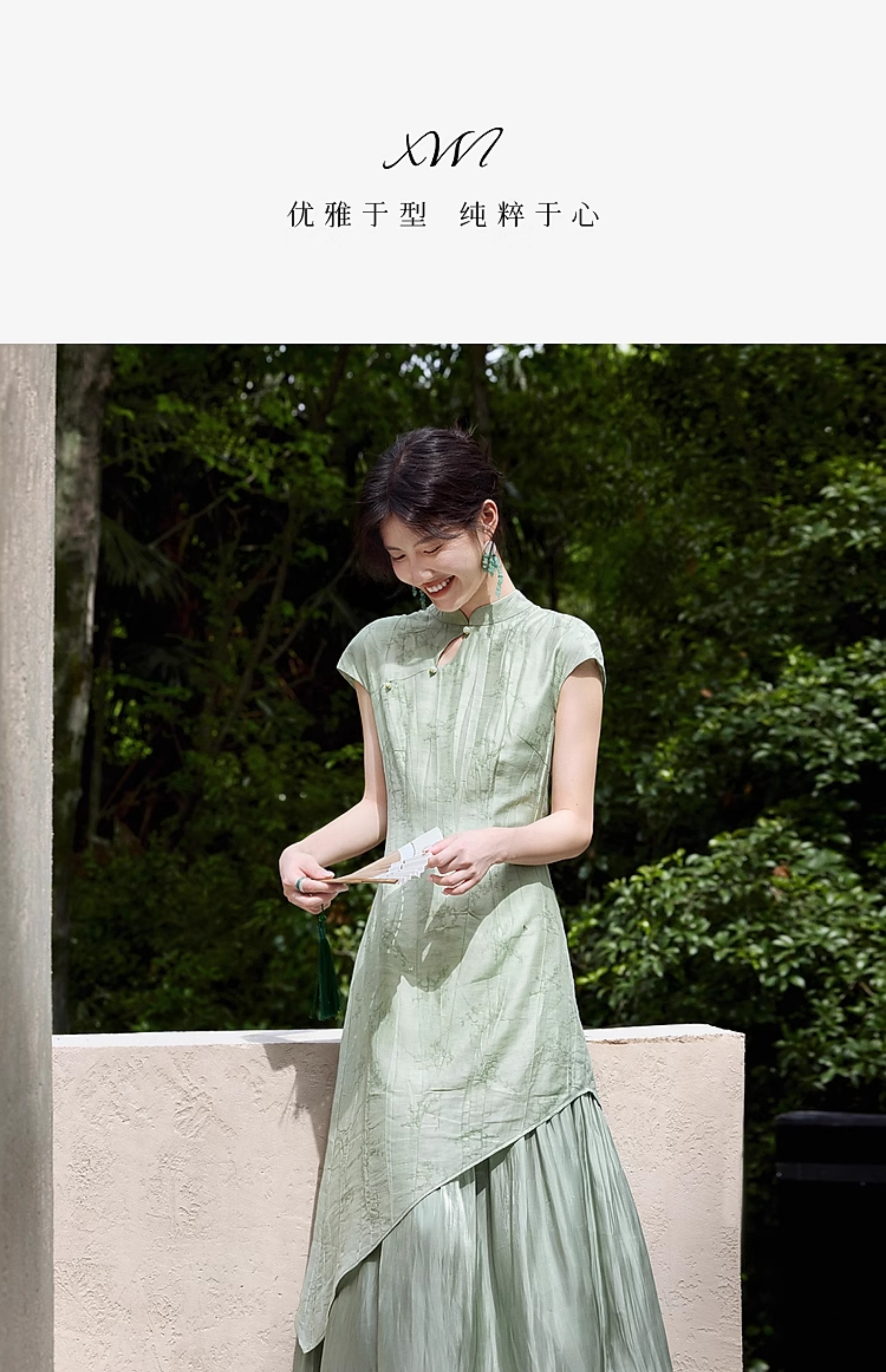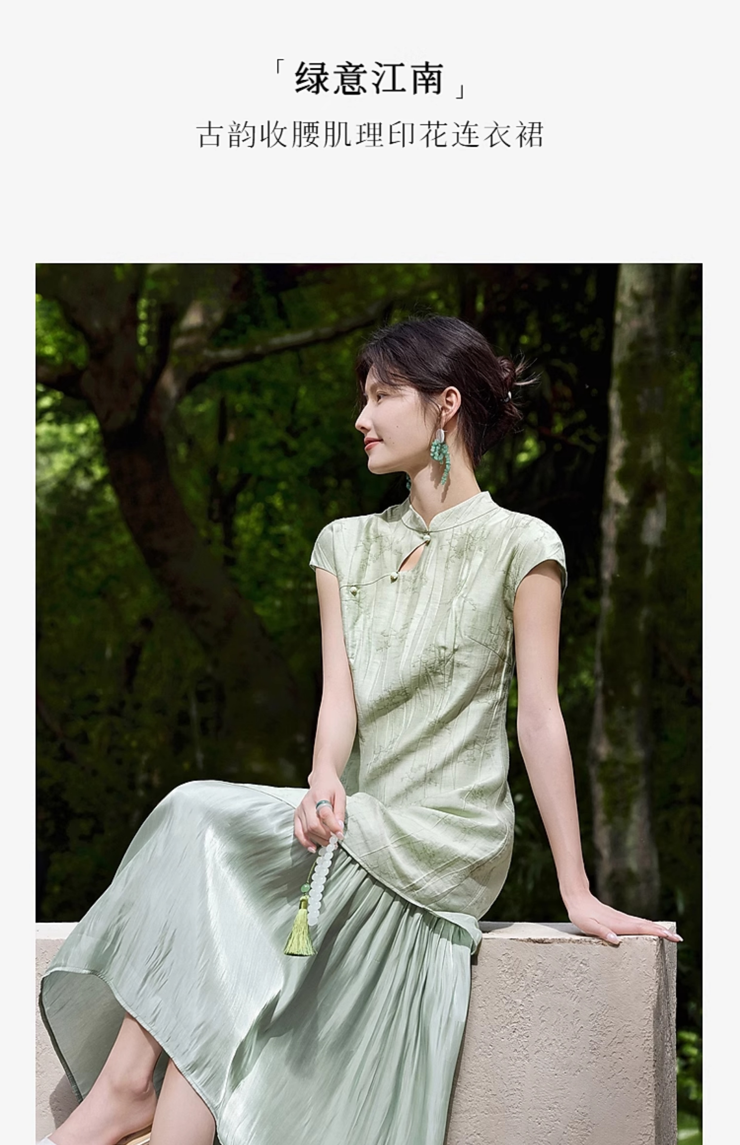 [博主同款]XWI訢未萊賽爾國風肌理感印花連衣裙女夏季改良旗袍裙