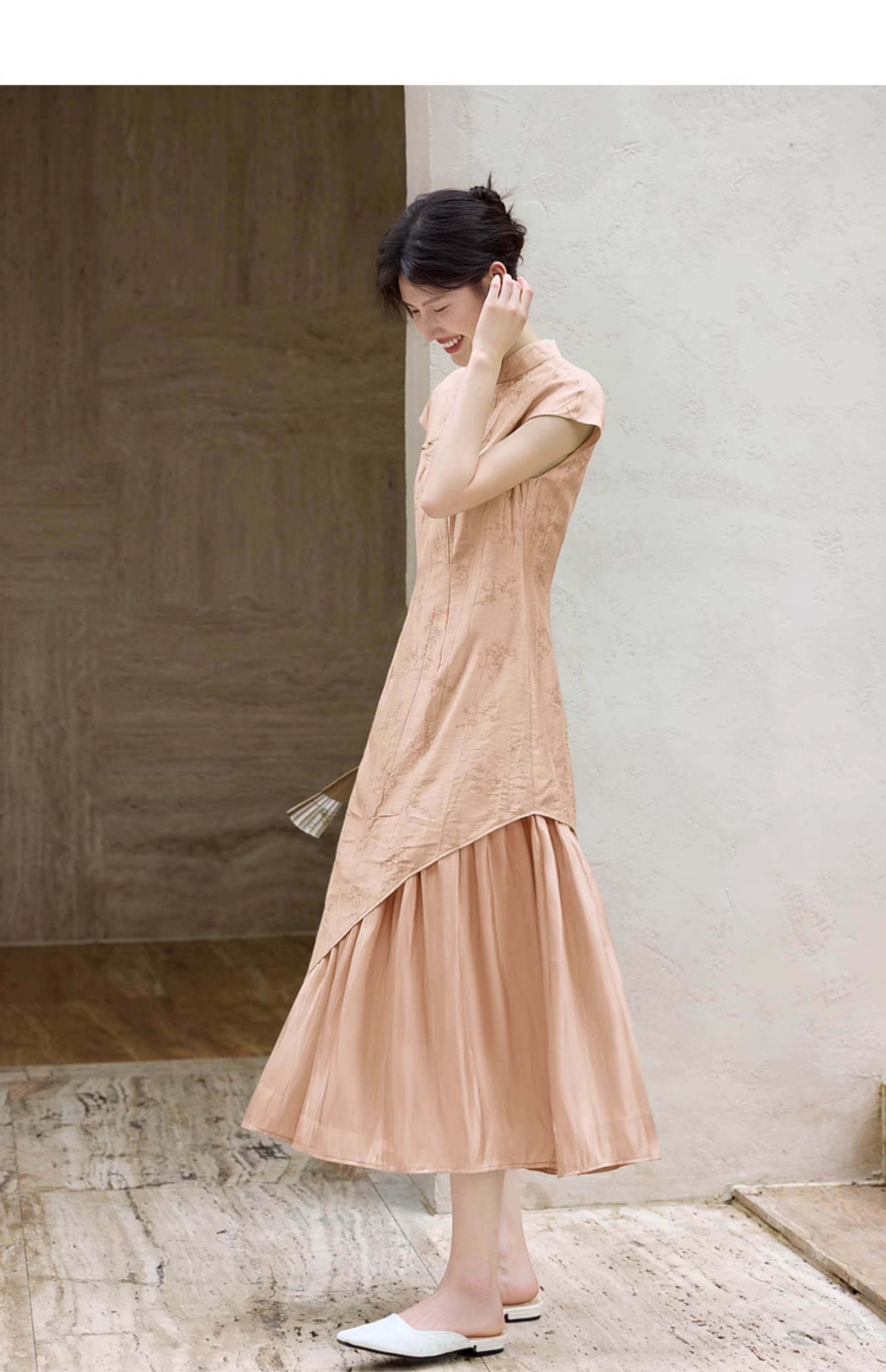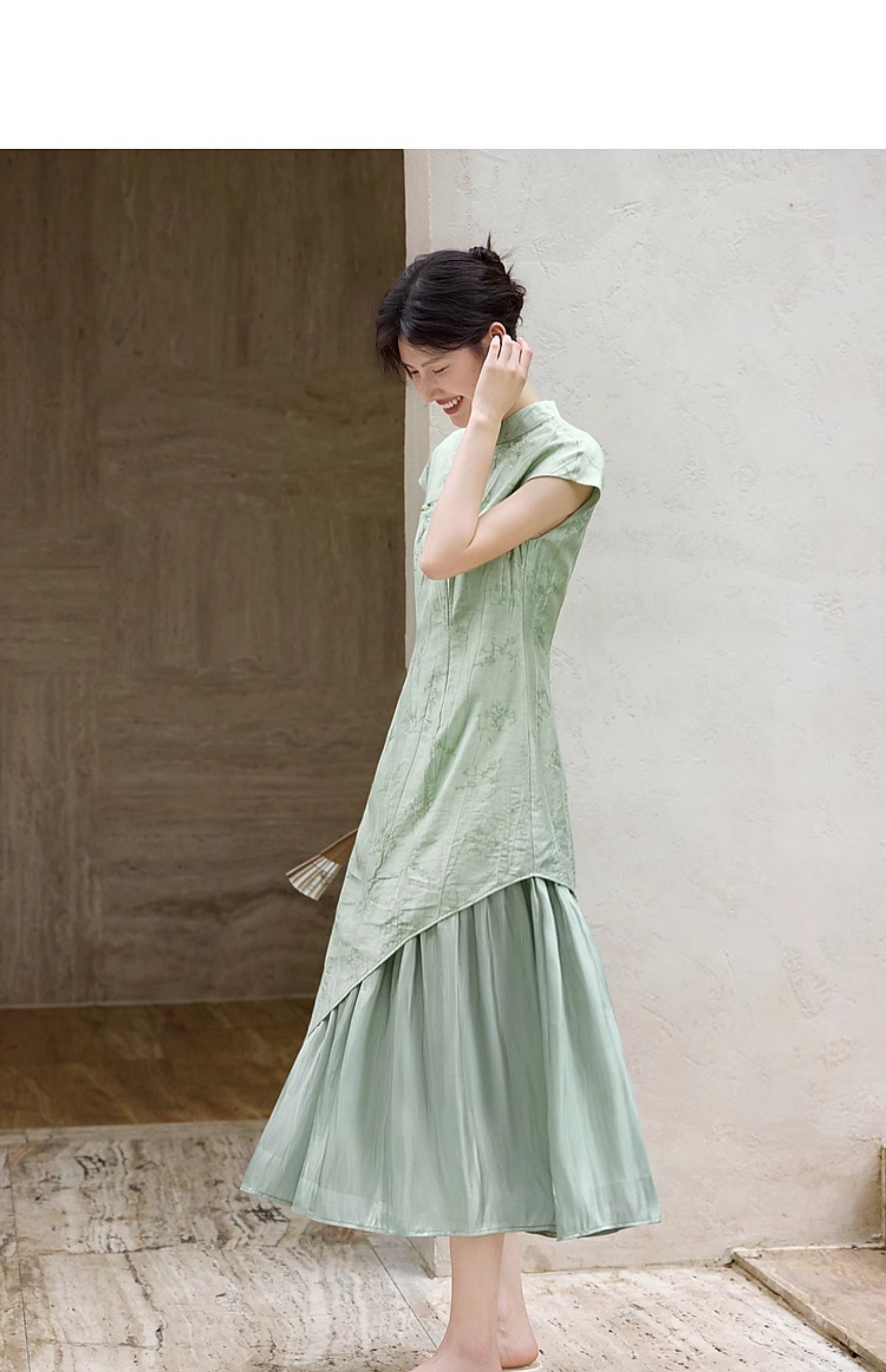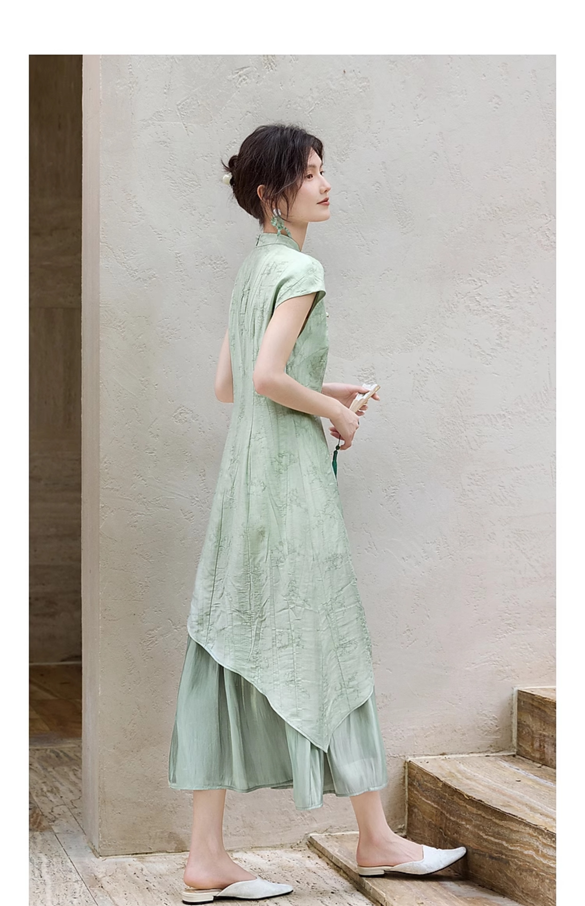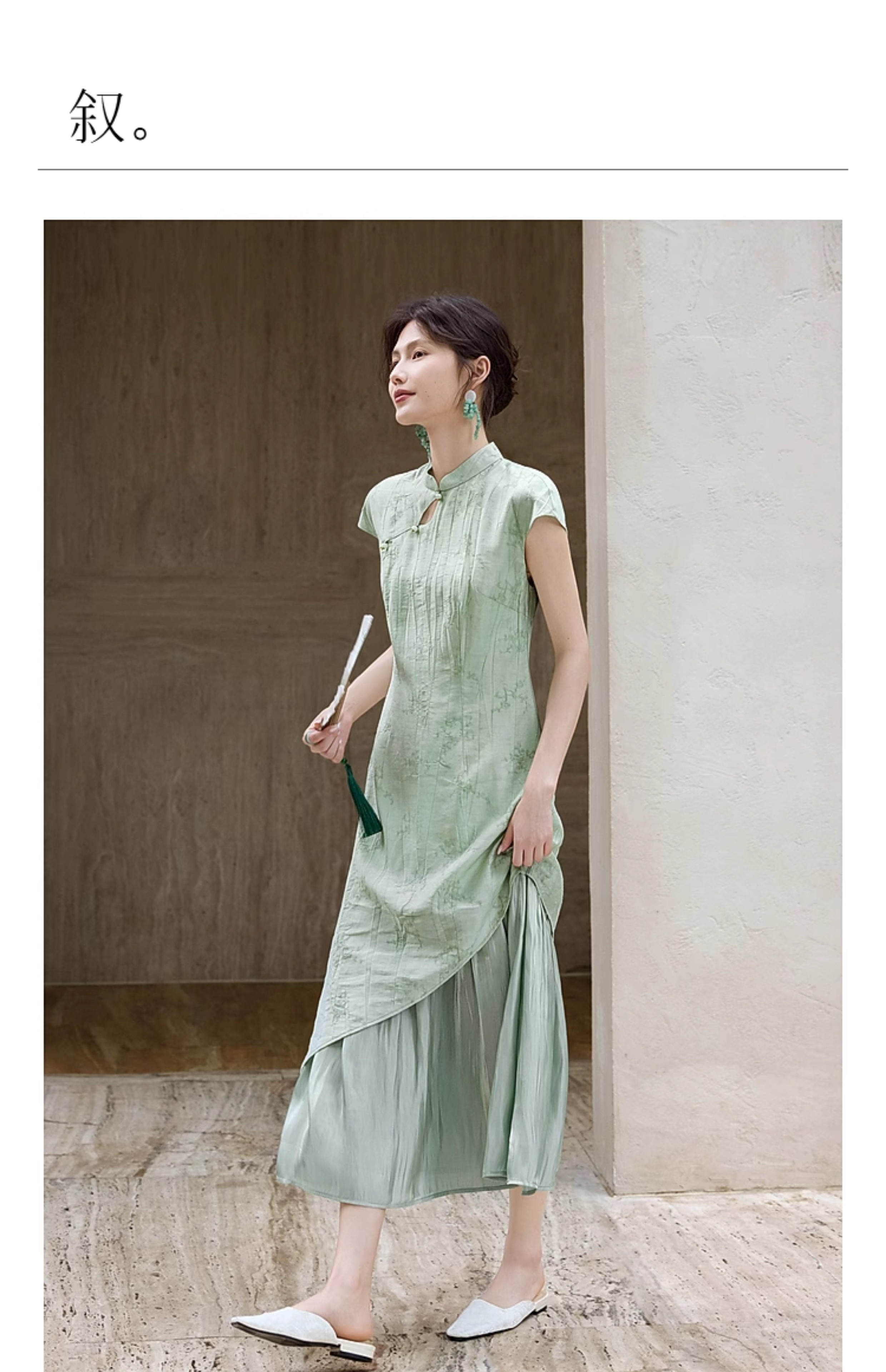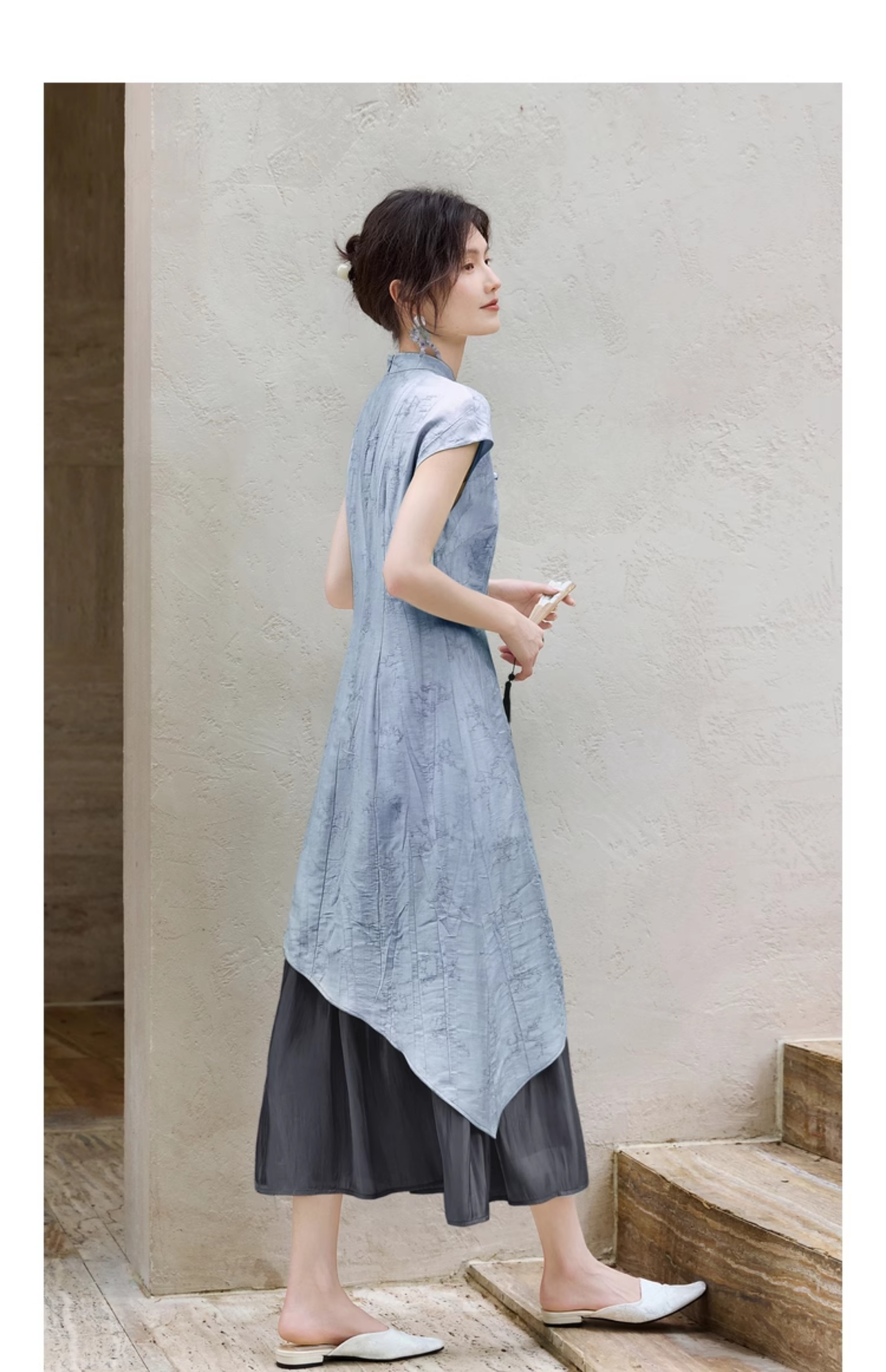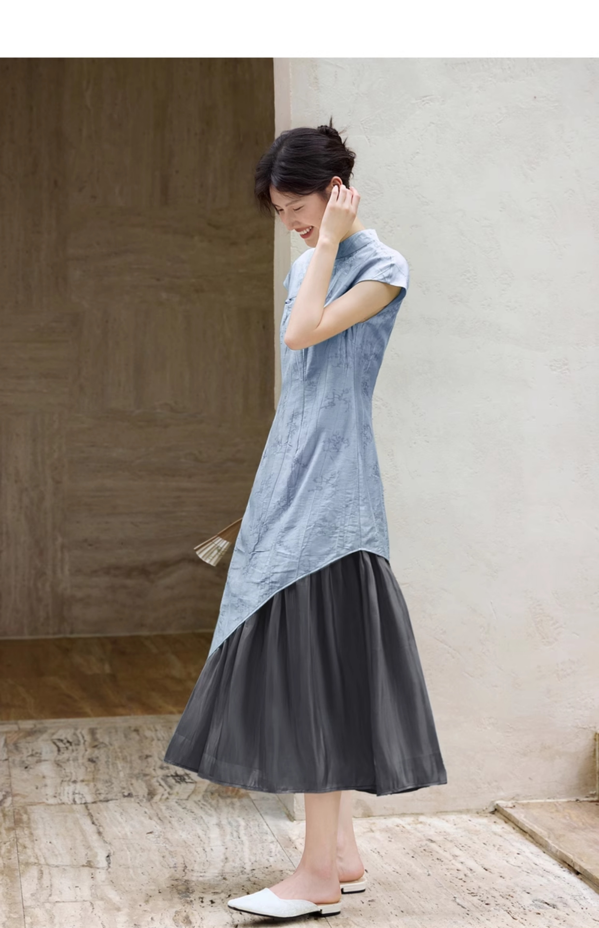 [博主同款]XWI訢未萊賽爾國風肌理感印花連衣裙女夏季改良旗袍裙
