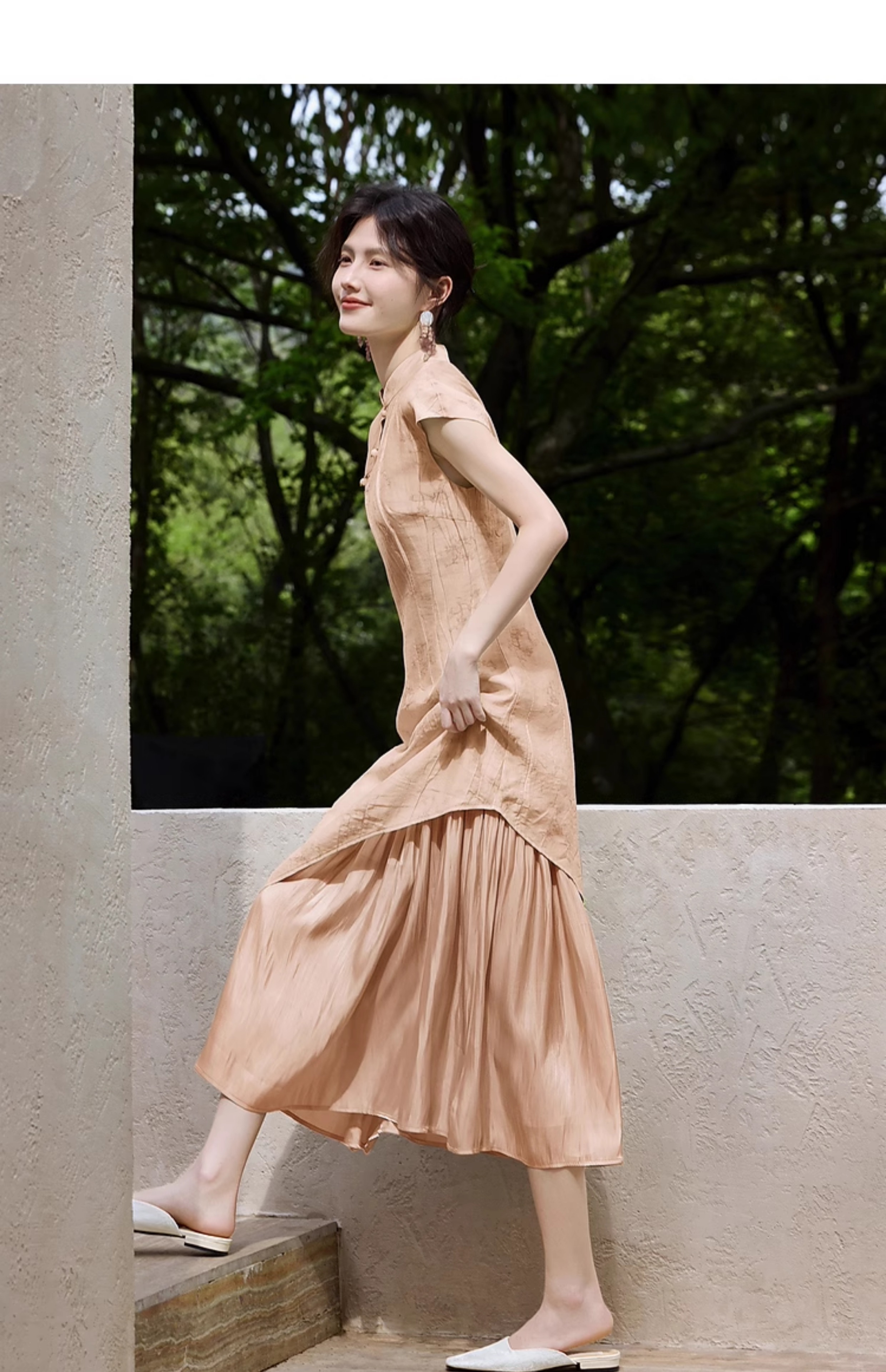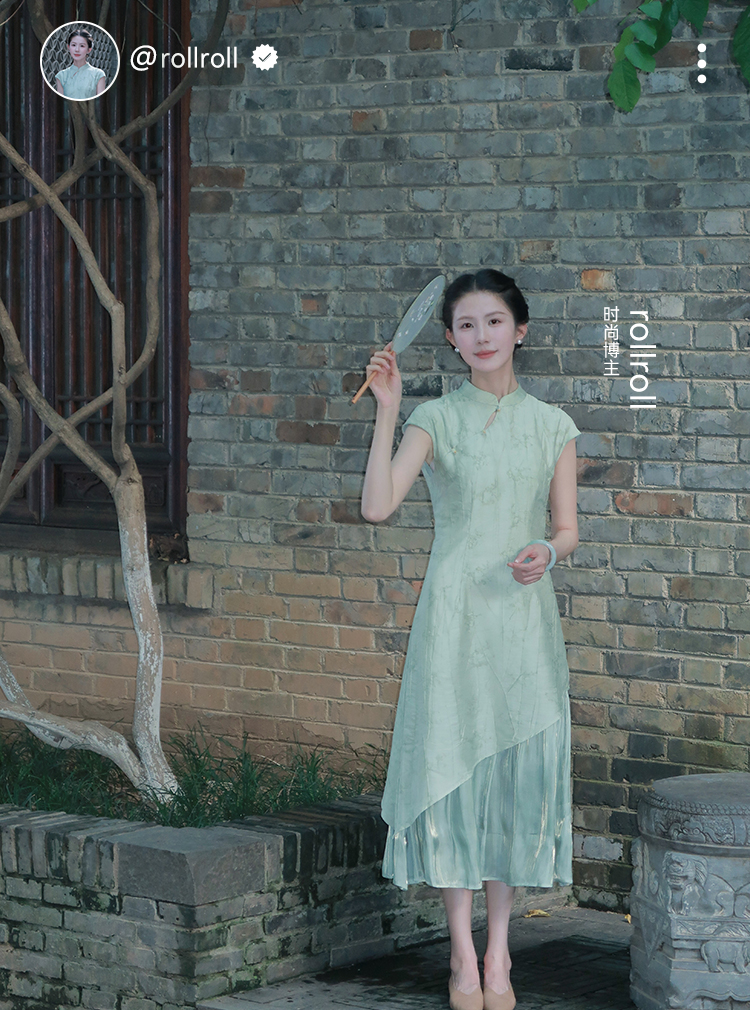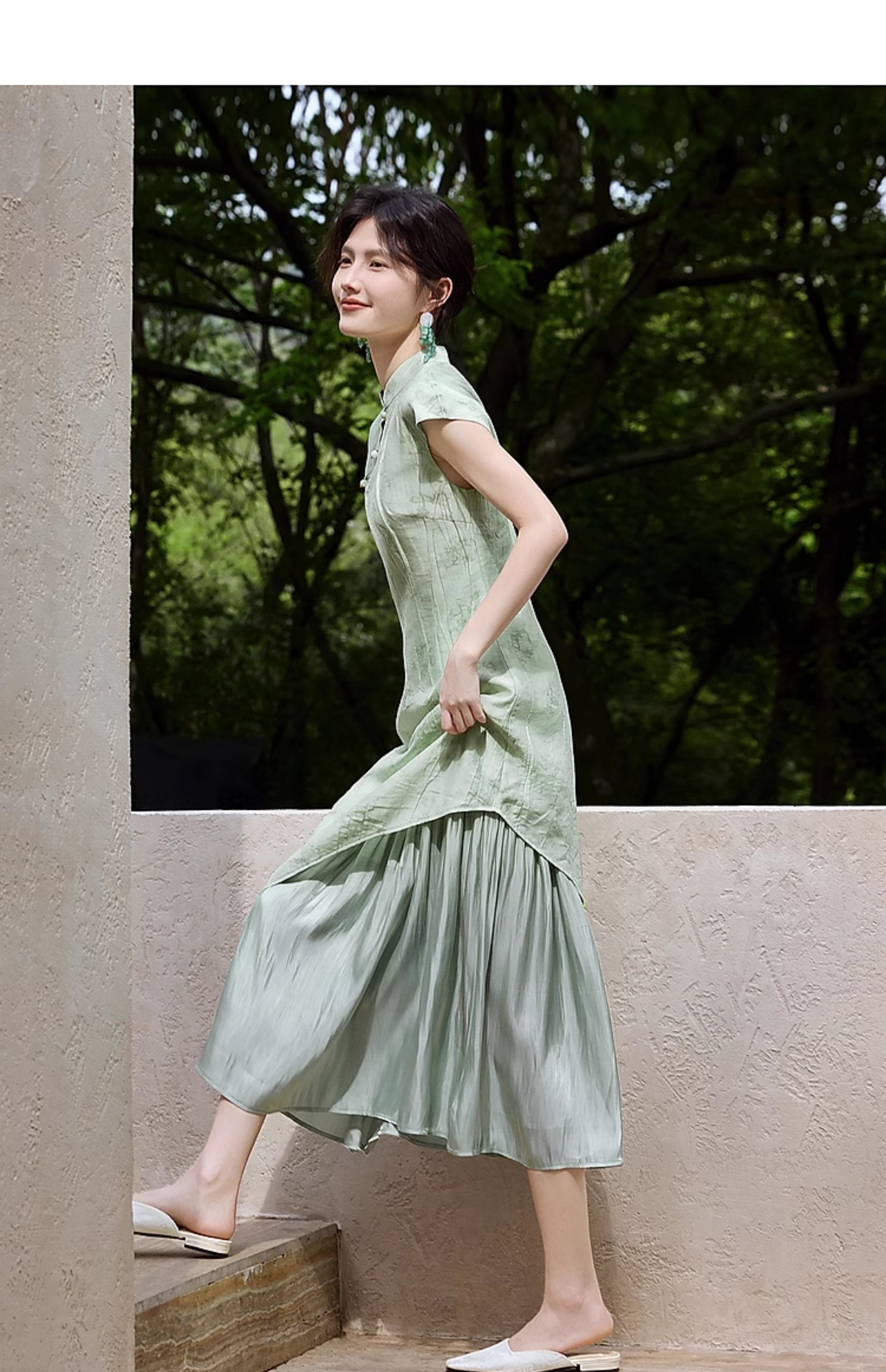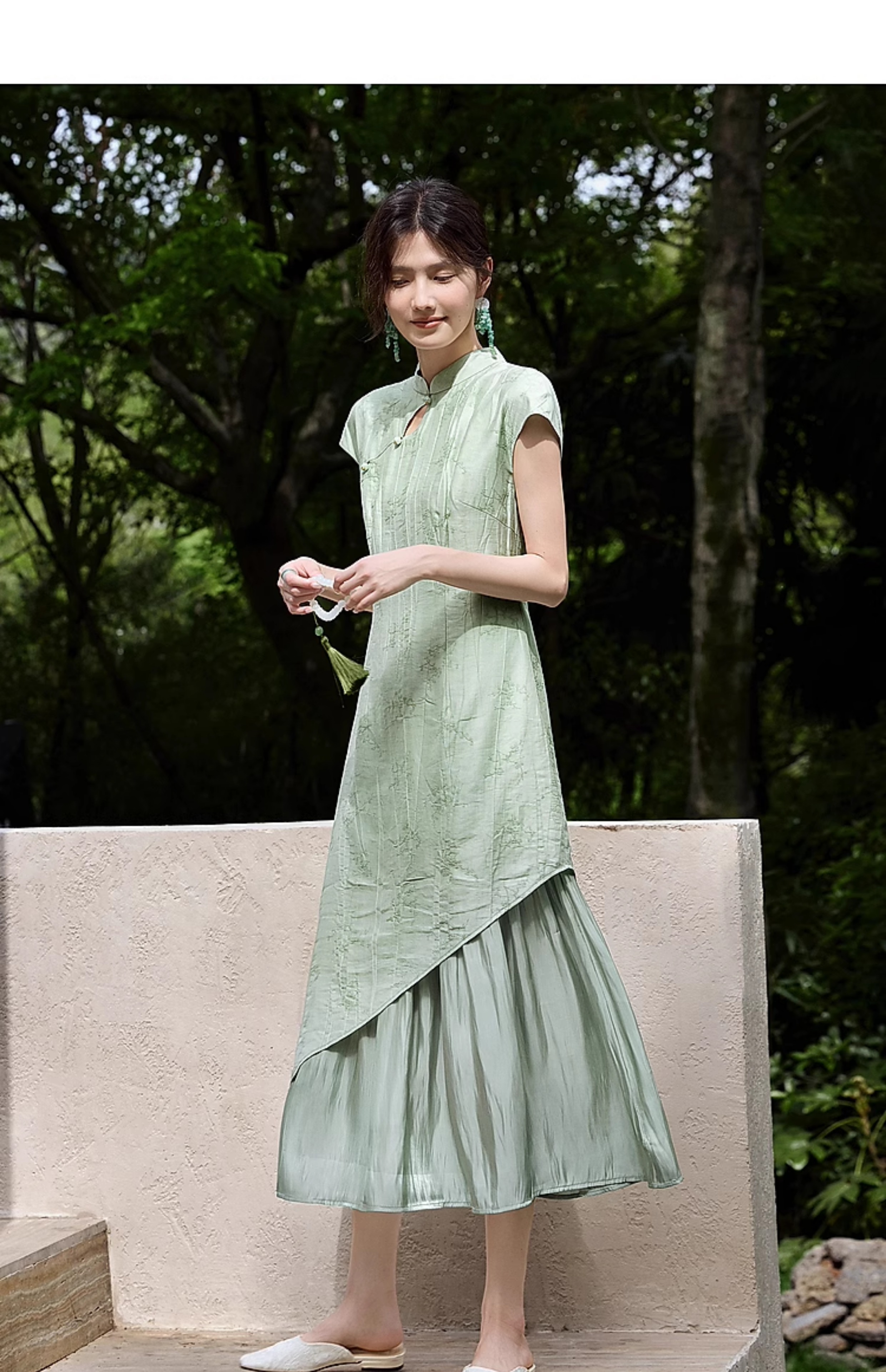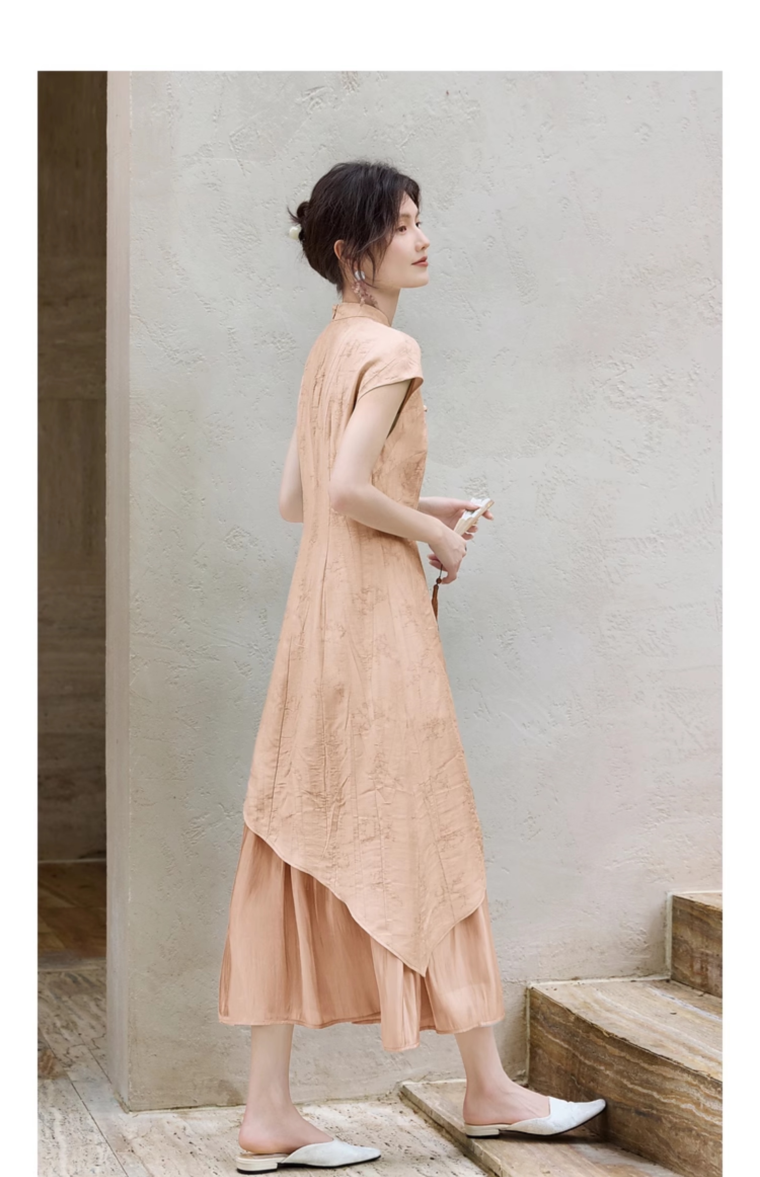 [博主同款]XWI訢未萊賽爾國風肌理感印花連衣裙女夏季改良旗袍裙
