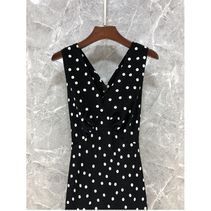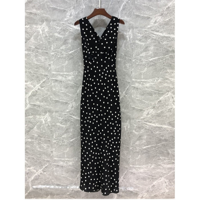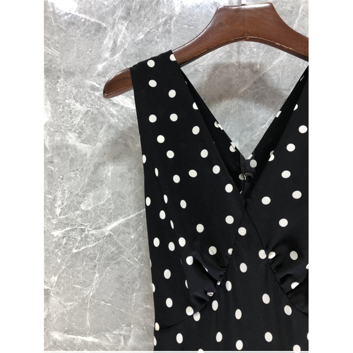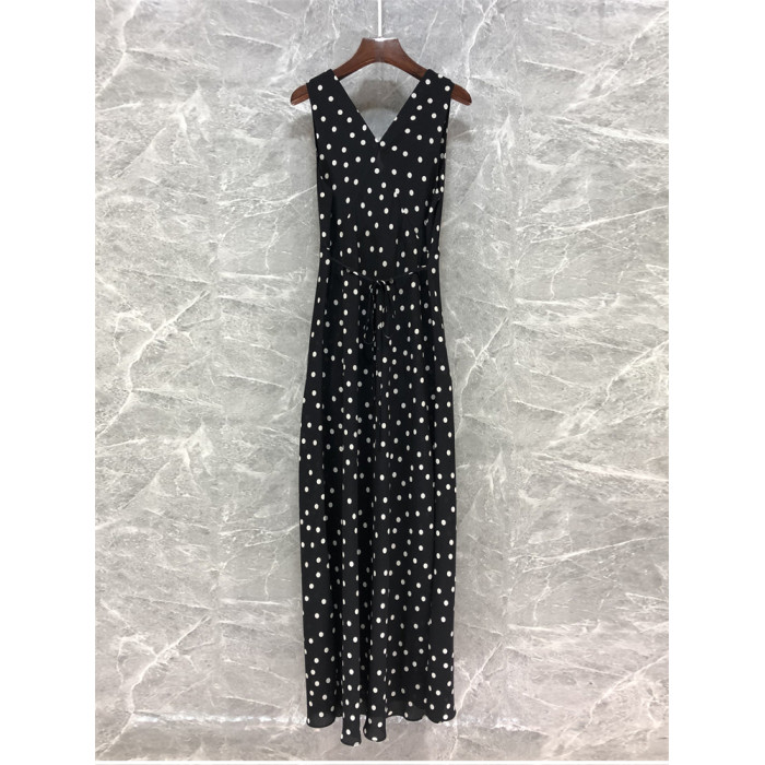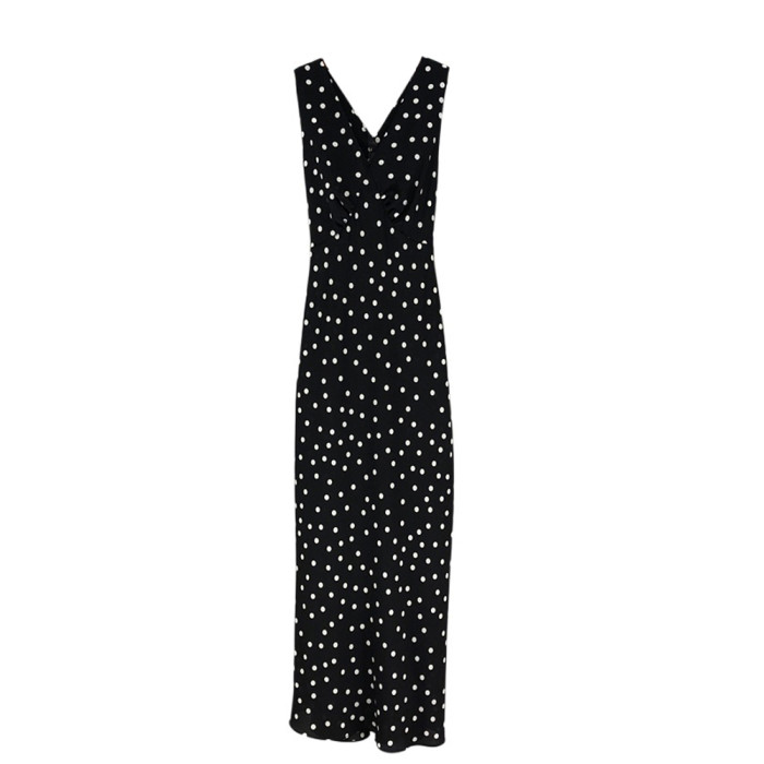 現南油#修身真絲背心連衣裙女夏季歐貨新款V領波點長裙64ZZ27