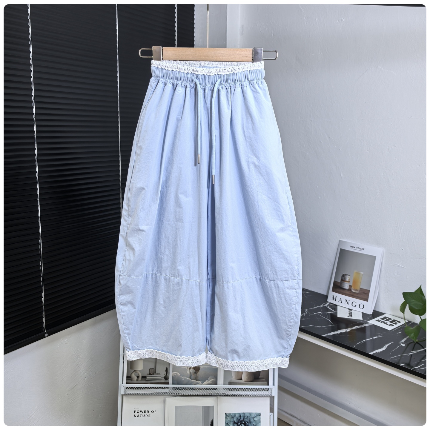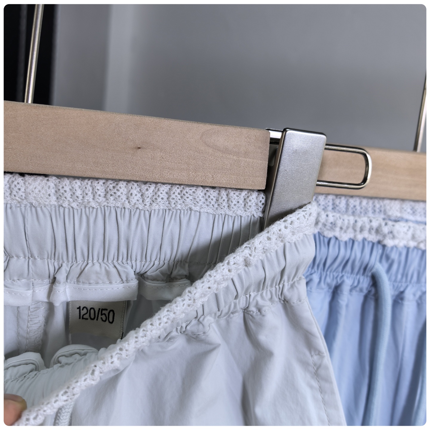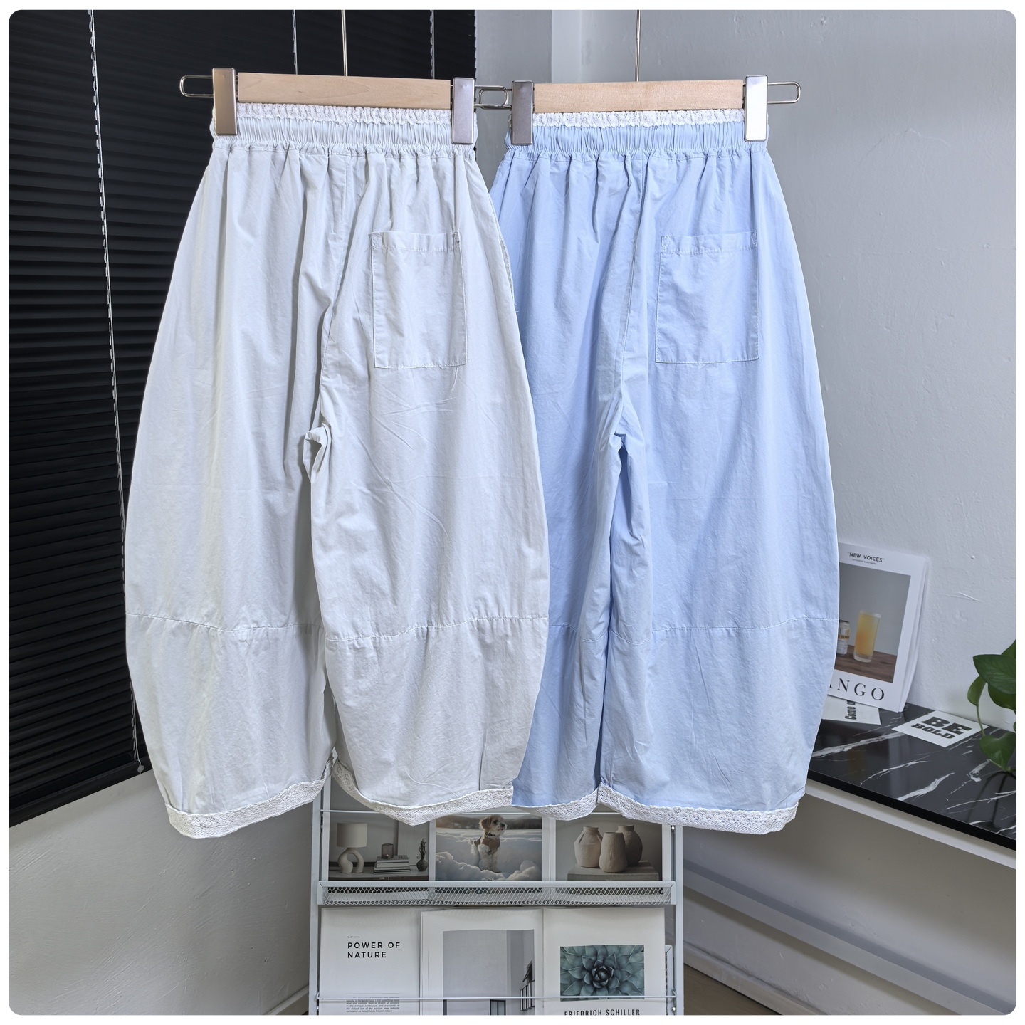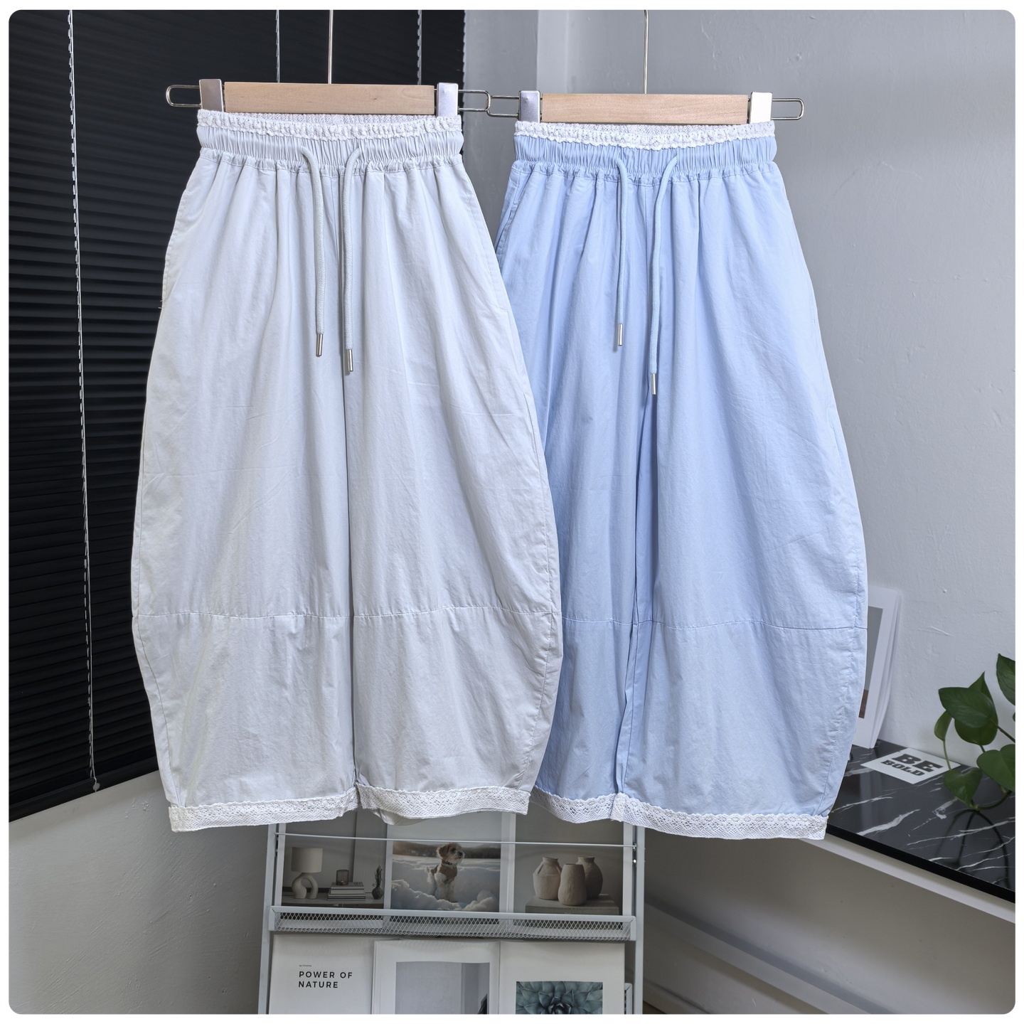 品牌E童褲120-170夏季超薄寬松兒童蕾絲花邊九分褲女童濶腿褲8218
