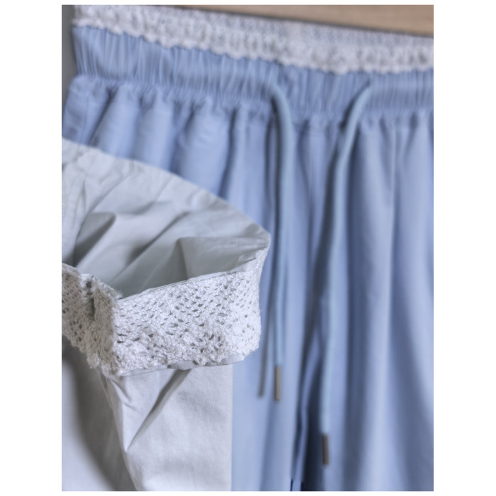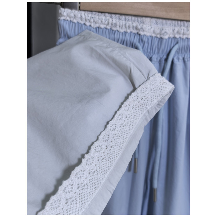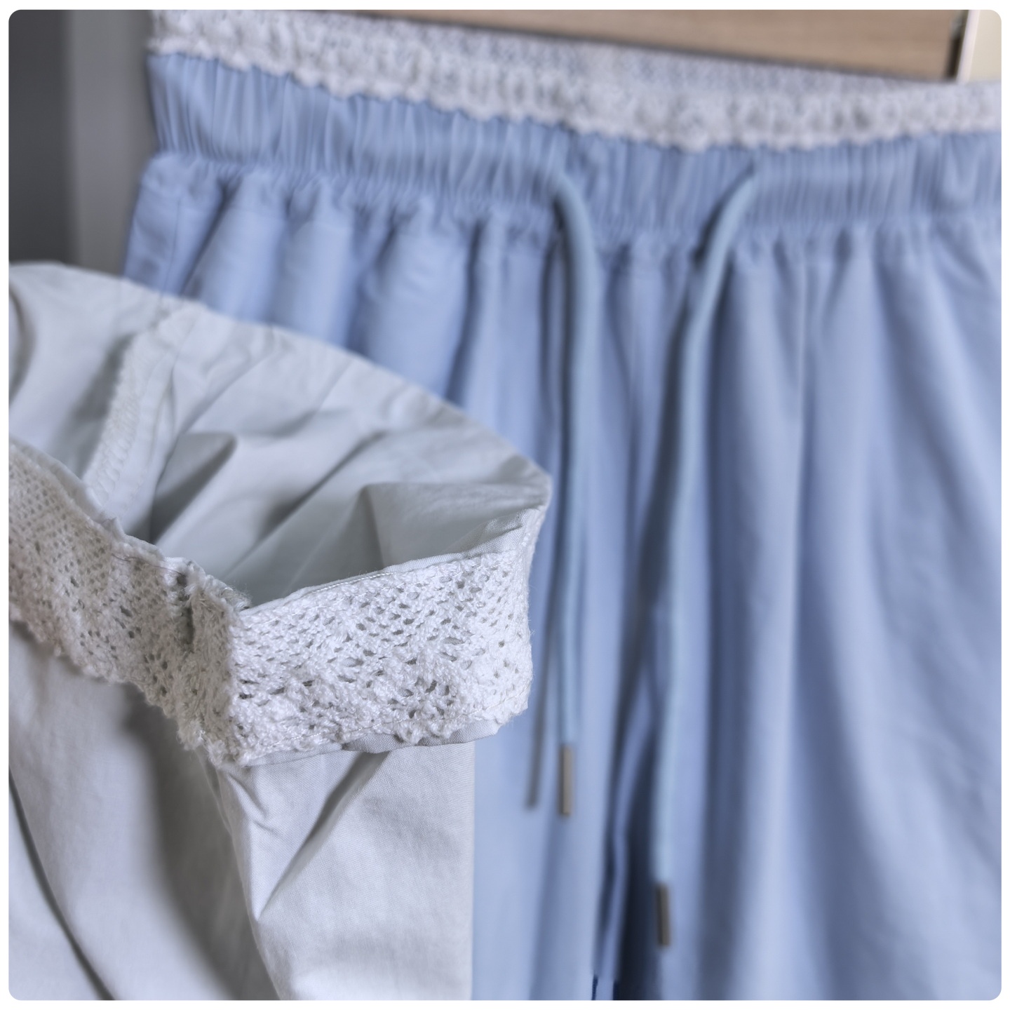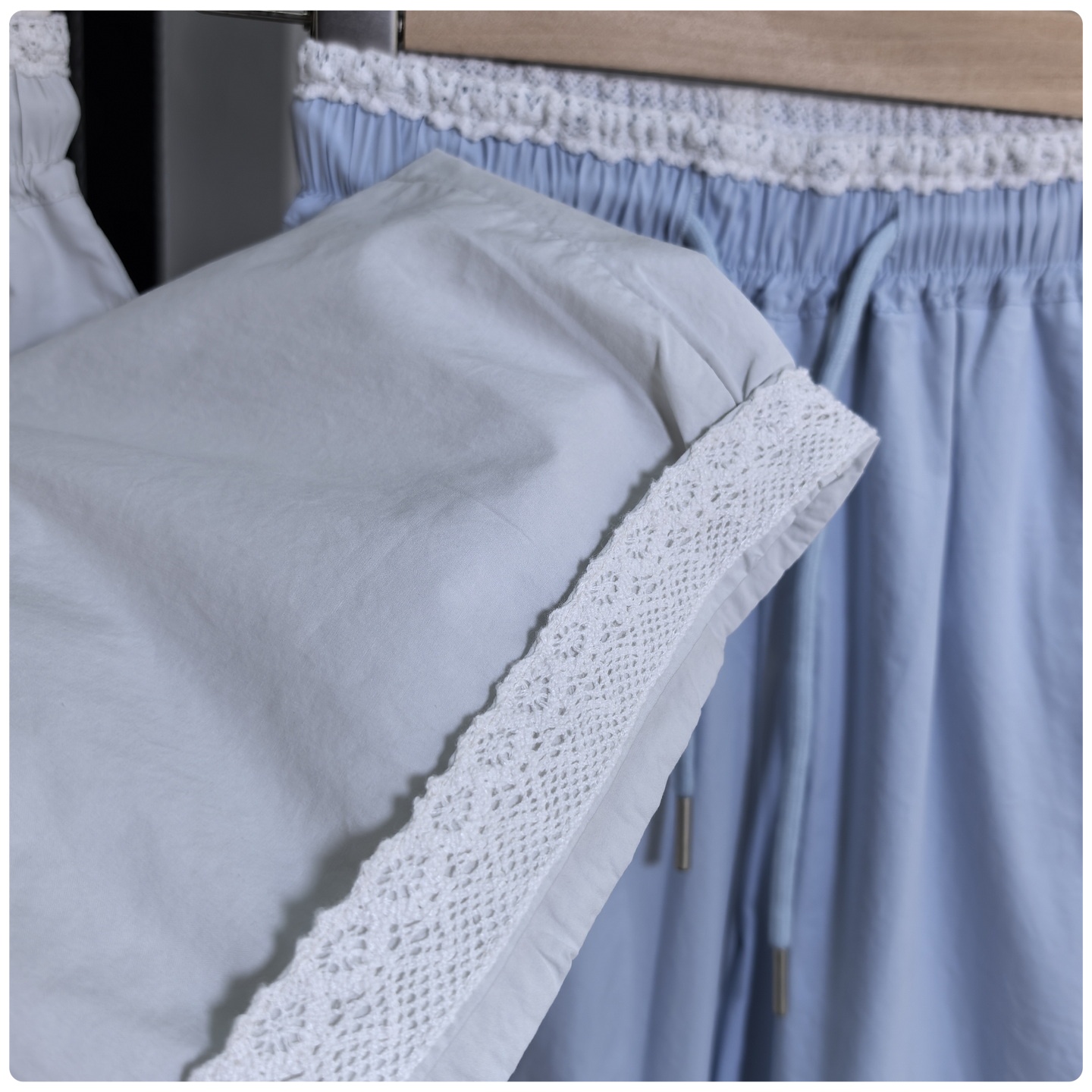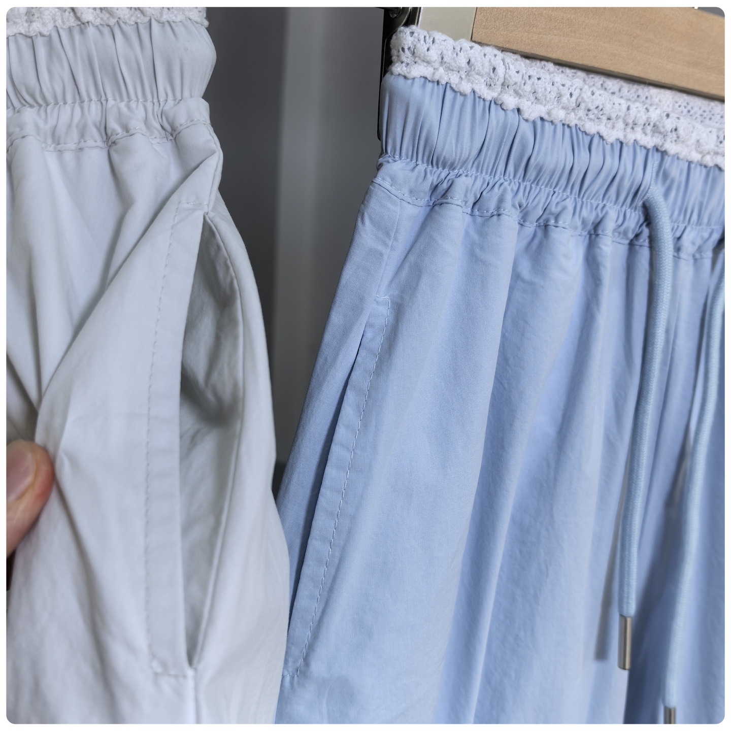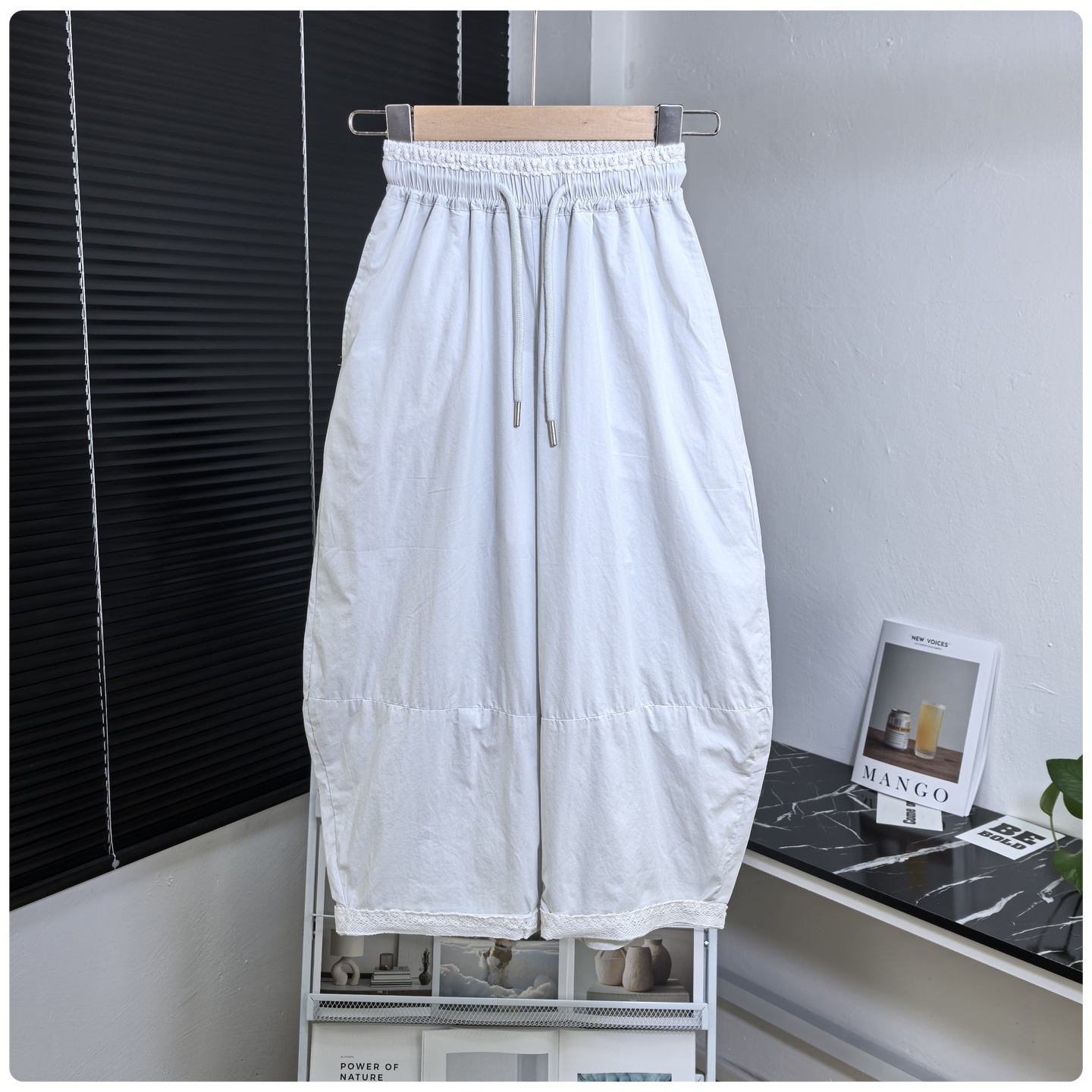 品牌E童褲120-170夏季超薄寬松兒童蕾絲花邊九分褲女童濶腿褲8218