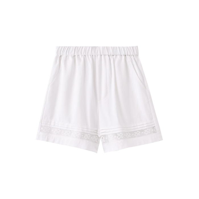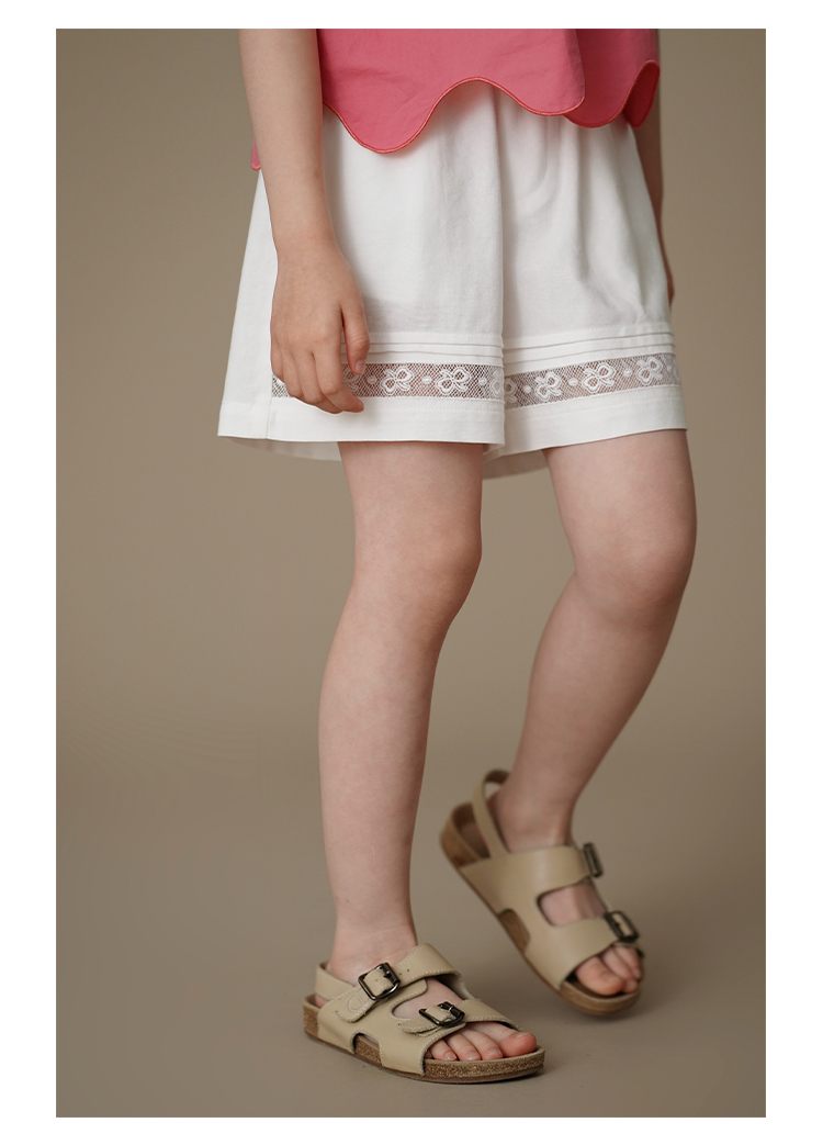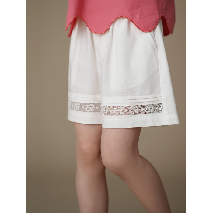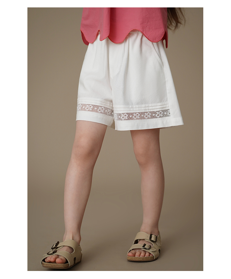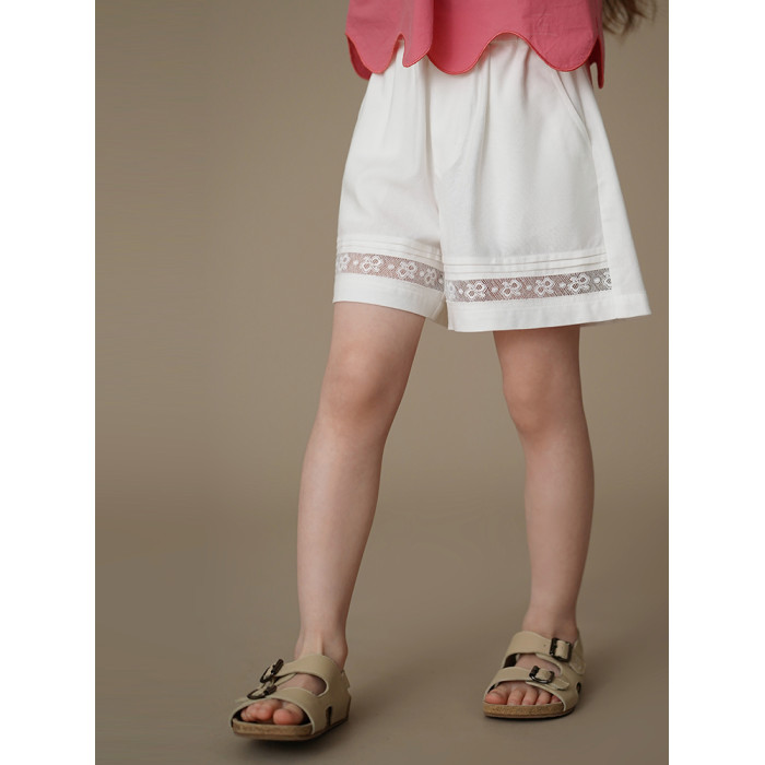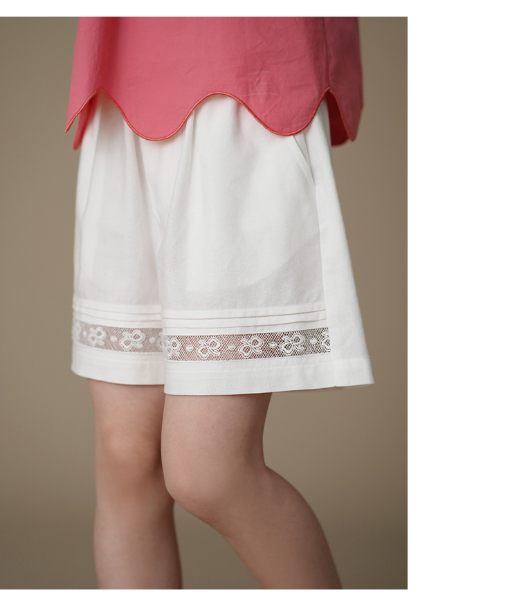 哈齒童裝夏季薄款兒童五分褲白色花邊短褲女童寬松濶腿褲休閒百搭