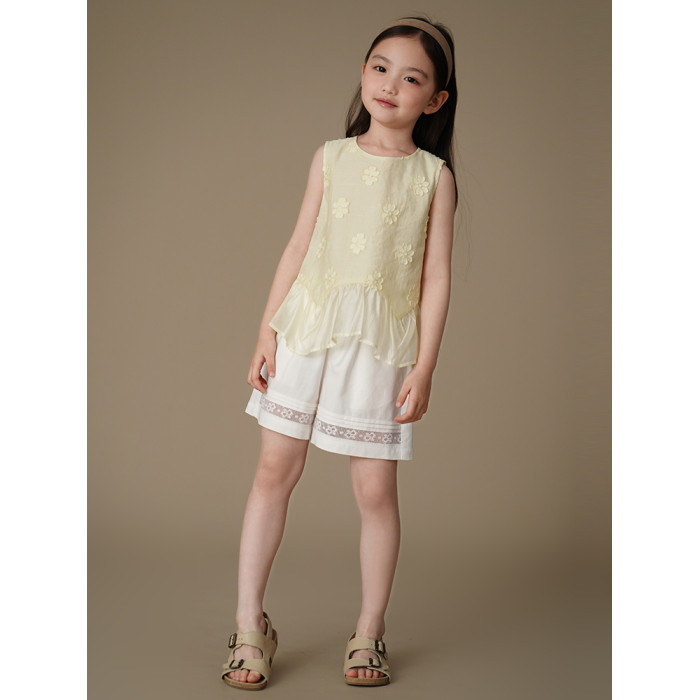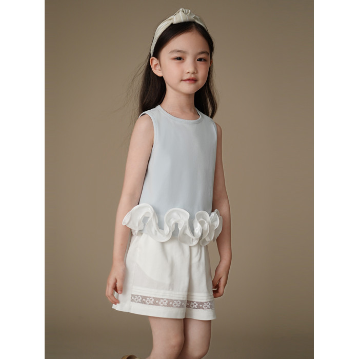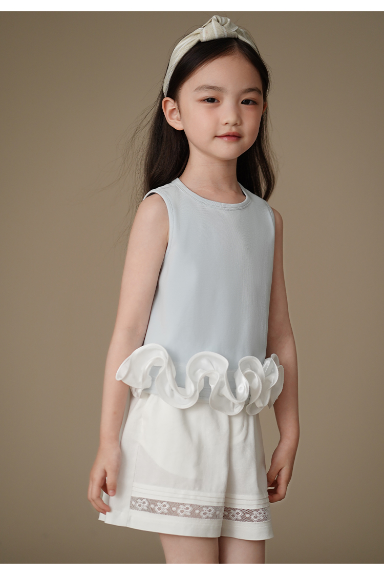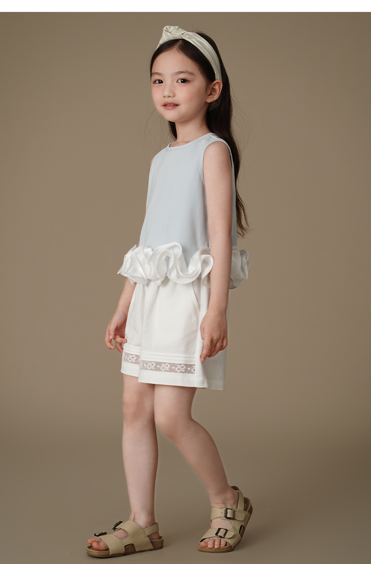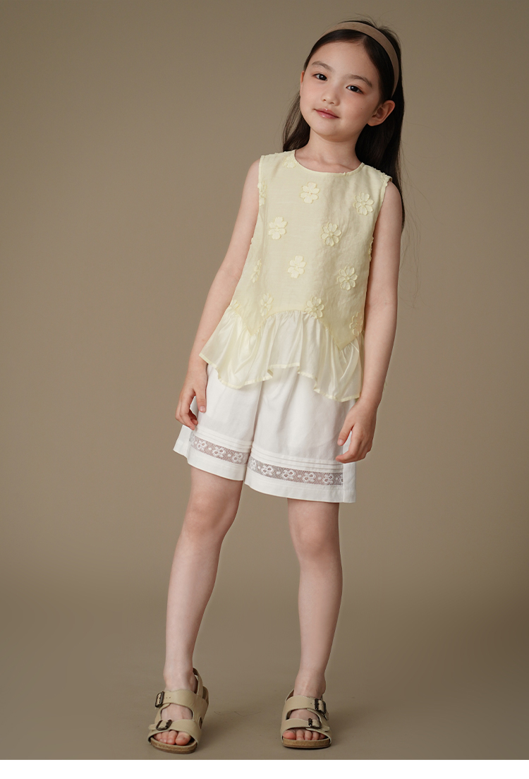 哈齒童裝夏季薄款兒童五分褲白色花邊短褲女童寬松濶腿褲休閒百搭