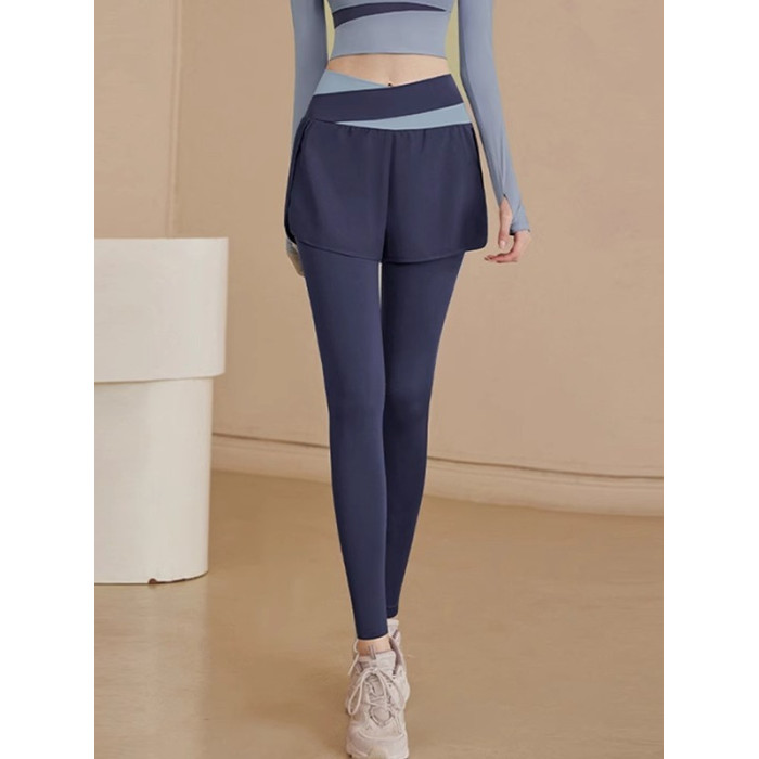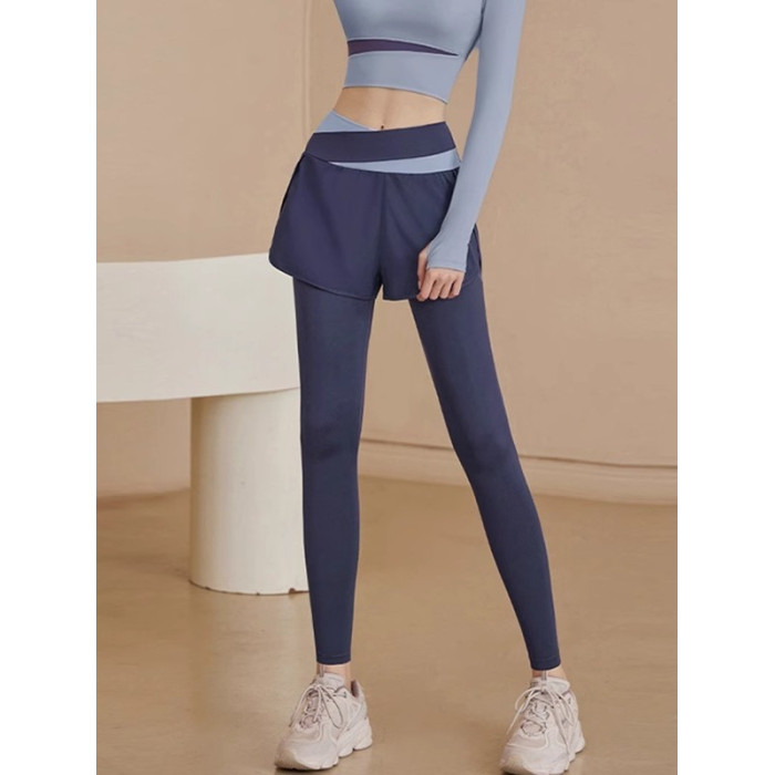 香港普拉提瑜伽褲女夏季2025新款絕美假兩件健身服戶外跑步運動褲