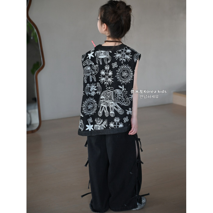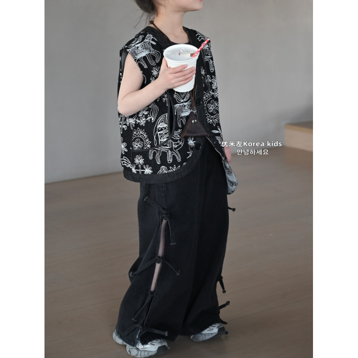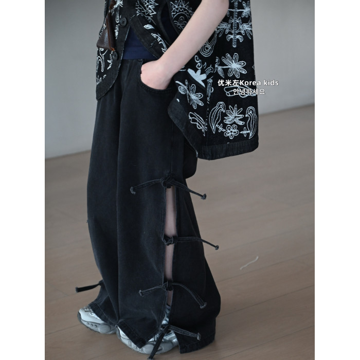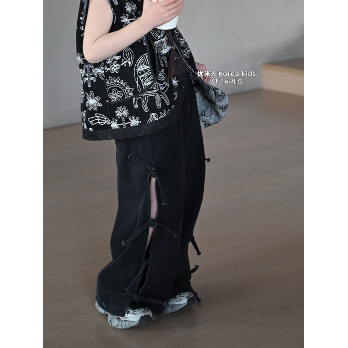 童裝女童牛仔褲2025新款洋氣時髦設計款秋季兒童褲子側邊蝴蝶結