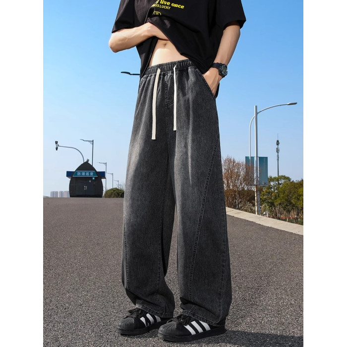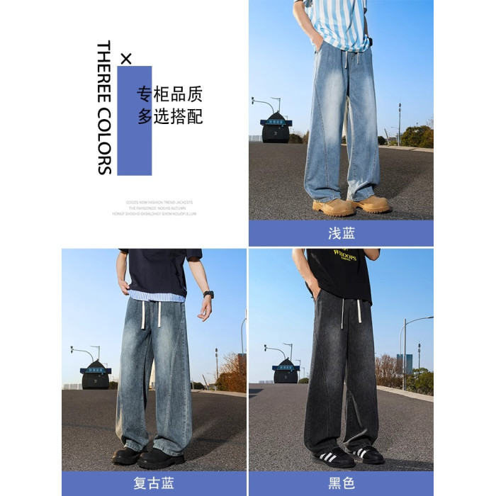 潮牌彎刀褲男夏季薄款2025年新款高級時尚直筒濶腿褲男款痞帥長褲