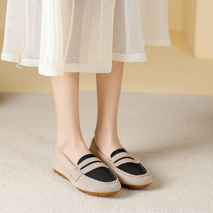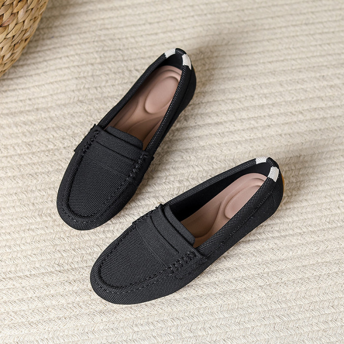 王妃豆豆鞋一腳蹬平底圓頭編織軟底休閒針織單鞋孕婦大碼女鞋飛織