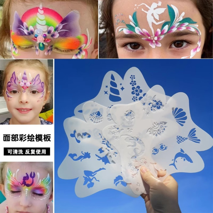 舞台妝兒童面部彩繪模板臉部鏤空繪畫模板卡通圖案擺攤臉繪工具