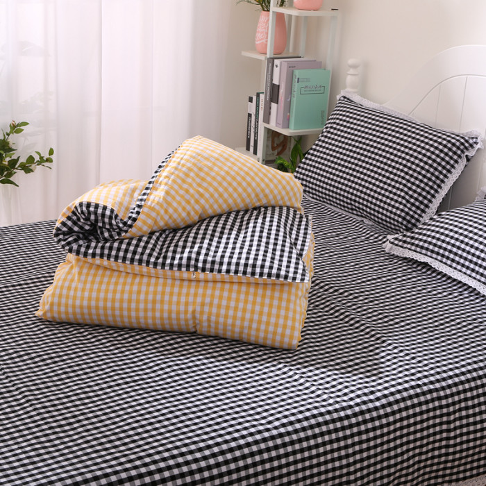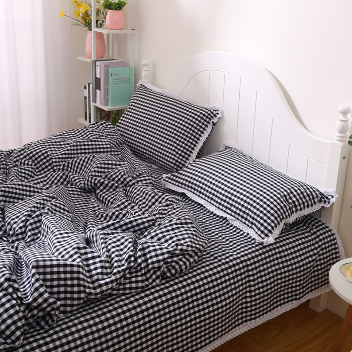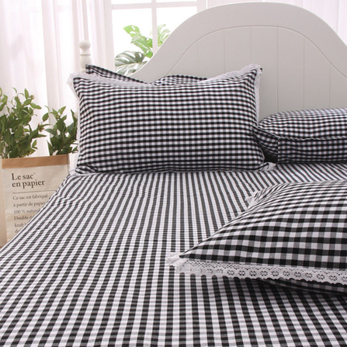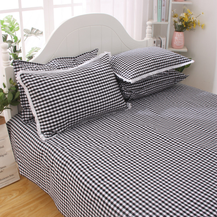 老粗布床單加厚加密純棉全棉三件套不起球單件黑白小格子被罩被套