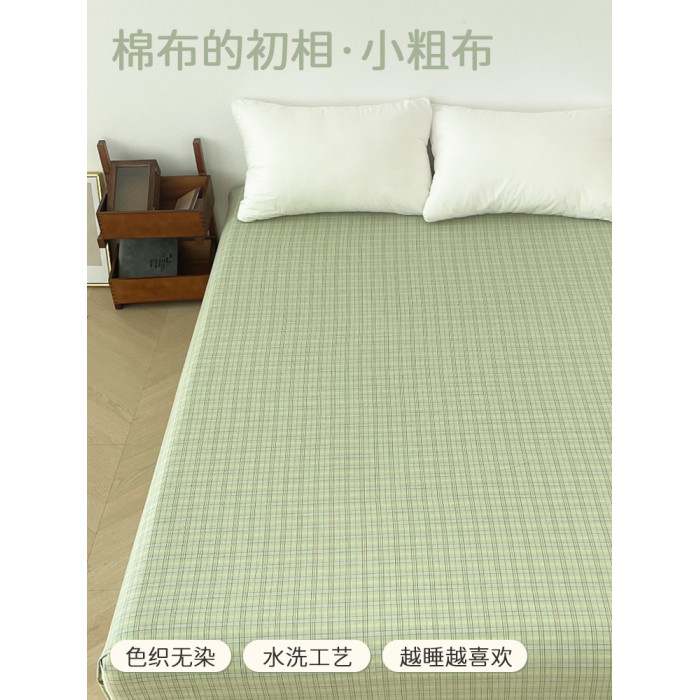 春遊時 溫柔系豆沙綠復古小粗布全棉床單床笠100純棉單件親膚被單