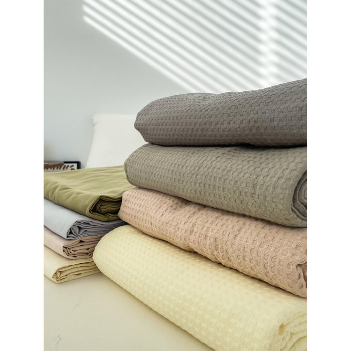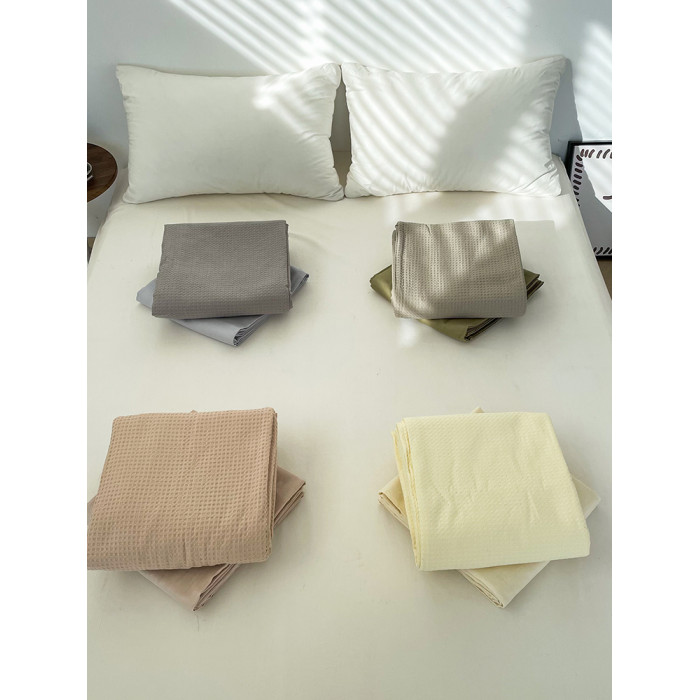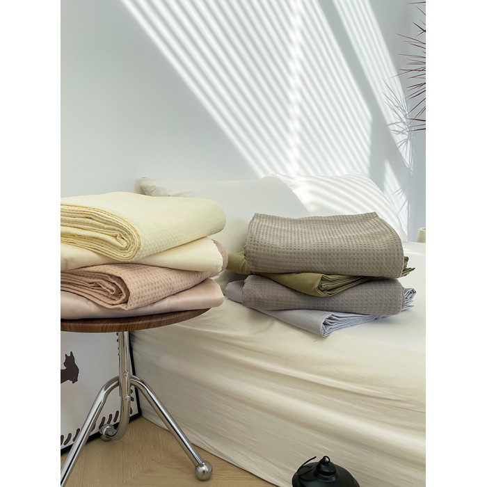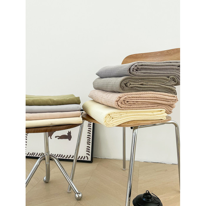 花花造夢純色華夫格系列床單床笠100全棉提花單件親膚透氣雙層紗
