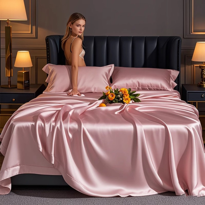 夏季真絲床單單件高檔絲滑裸睡四件套冰絲被單枕套輕奢天絲三件套