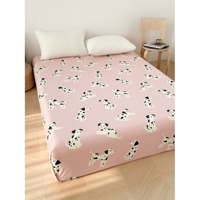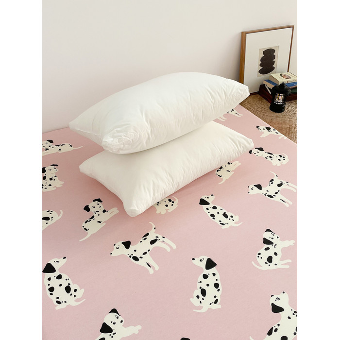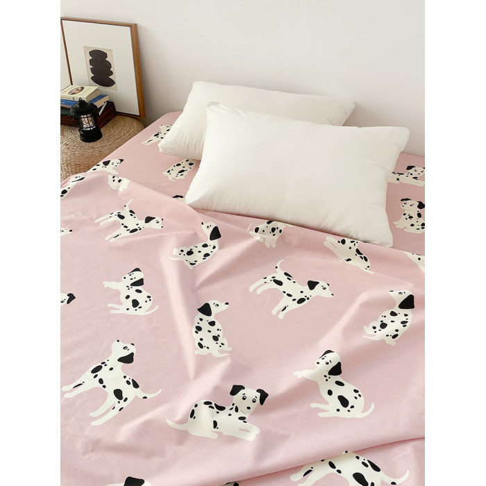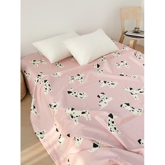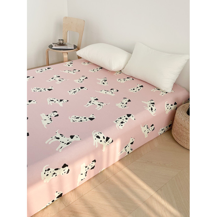 斑點狗 粉色原創可愛斑點狗全棉床單床笠寵物狗狗插畫100全棉親膚