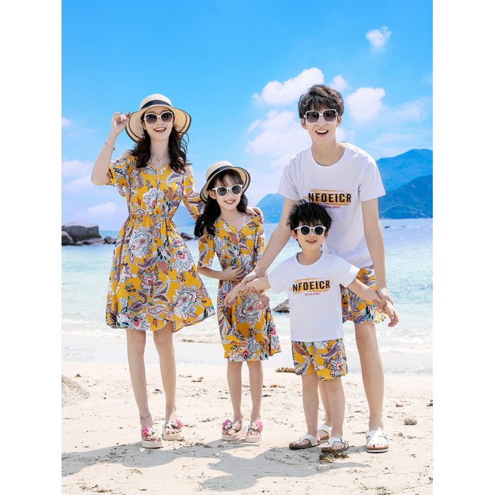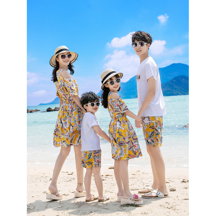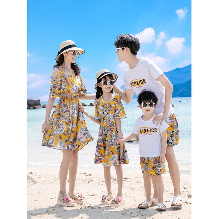 親子裝一家三口四口夏季2025新款海邊度假母子母女裝夏裝連衣裙潮