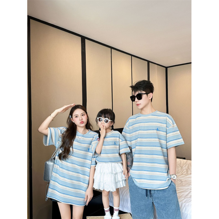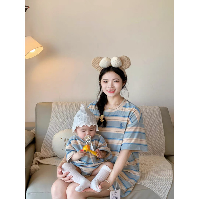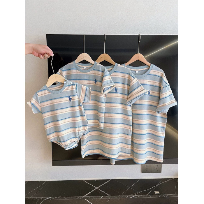 不一樣親子裝子一家三口夏裝母子裝母女裝條紋小月齡嬰兒短袖T恤