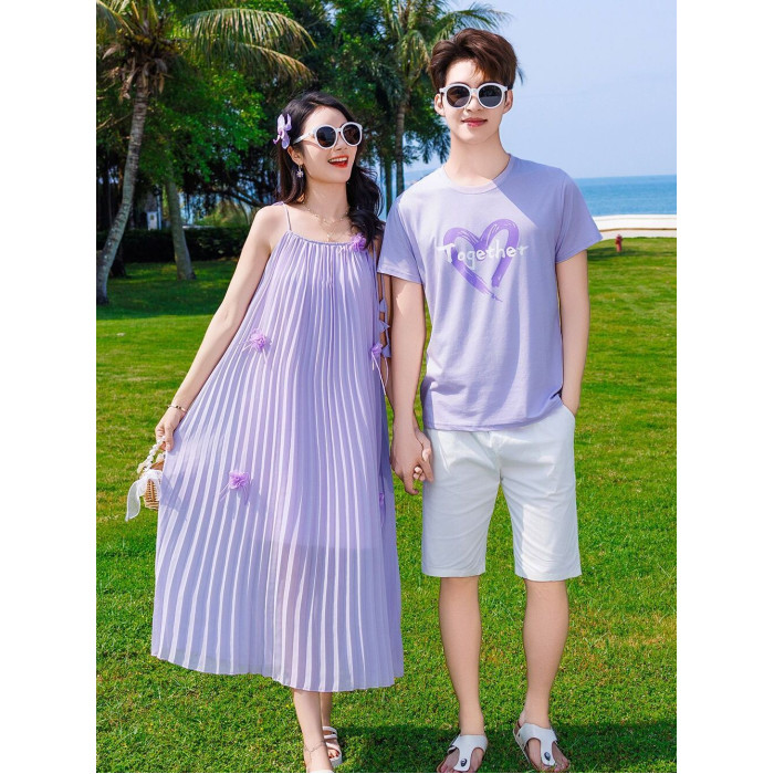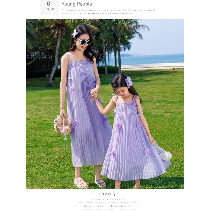 2025夏季新款兩件套親子裝母女裙沙灘款一家三口四口夏季休閒套裝