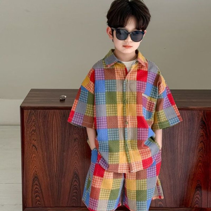 2025新款兄妹裝兒童夏季男女童韓版炸街格子襯衫龍鳳胎親子裝套裝