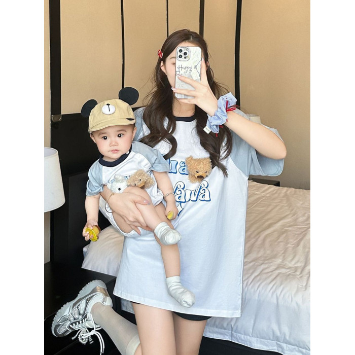 插肩袖多巴胺親子裝夏裝短袖t恤小月齡一家三口四口母子母女裝潮