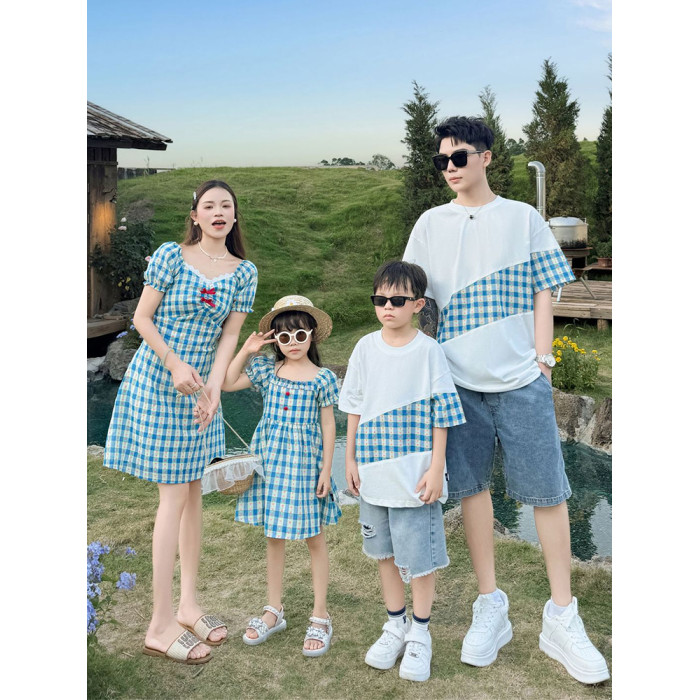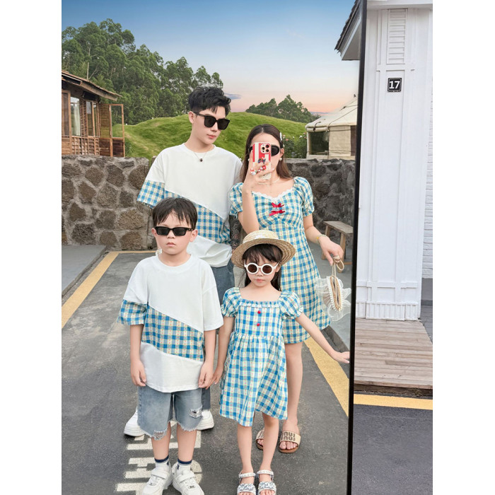 適合旅遊拍照的親子裝母女一家三口四口母子夏北京新疆外出連衣裙