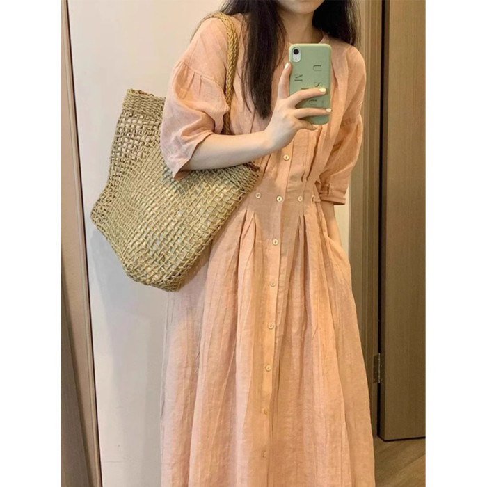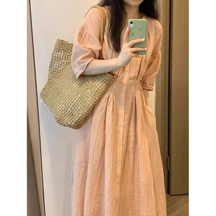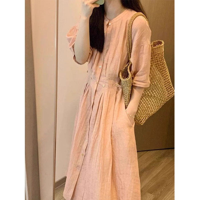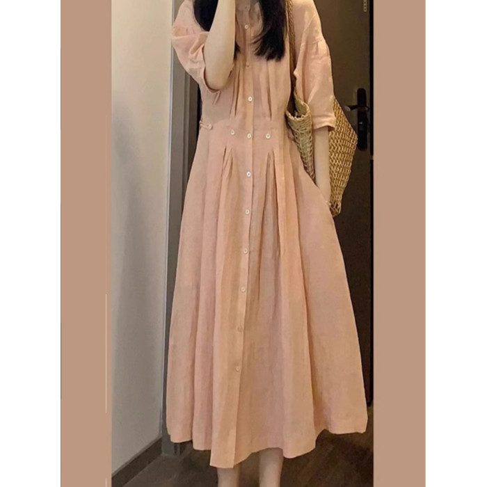 歐洲站夏季2025新款法式茶歇氣質長裙高級感寬松顯瘦襯衫連衣裙女