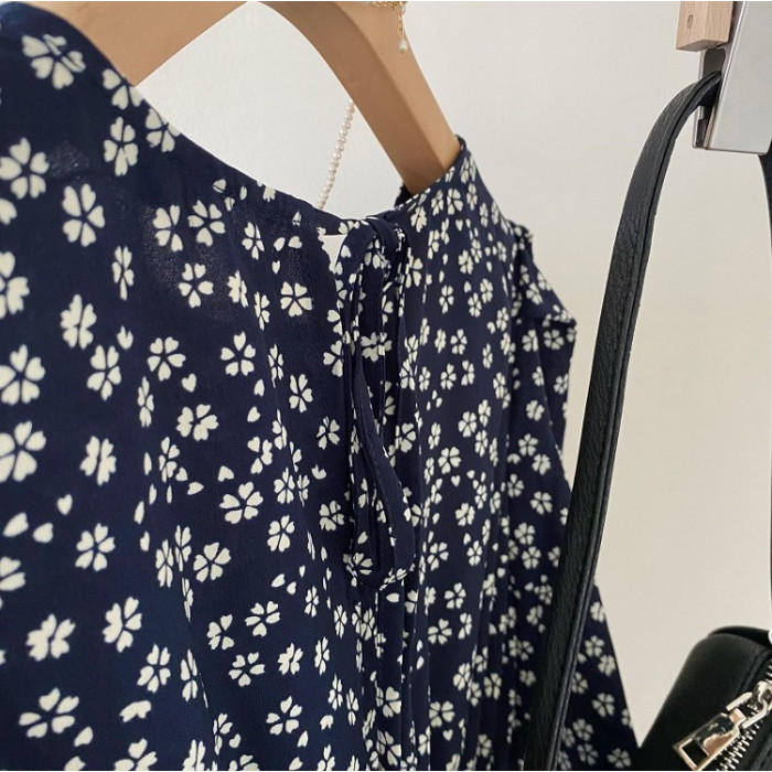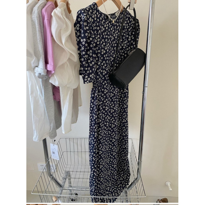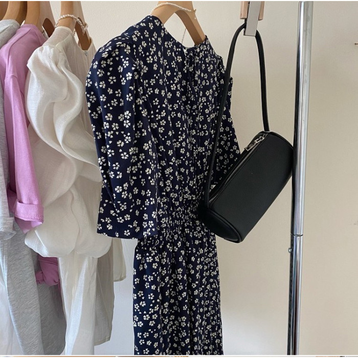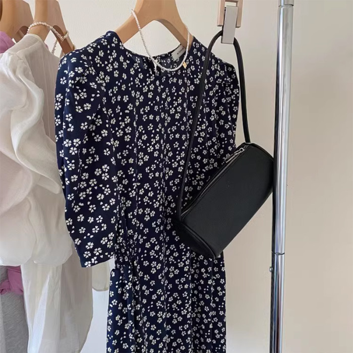 韓國chic2025夏季新款法式復古長裙韓版顯瘦氣質碎花雪紡連衣裙女