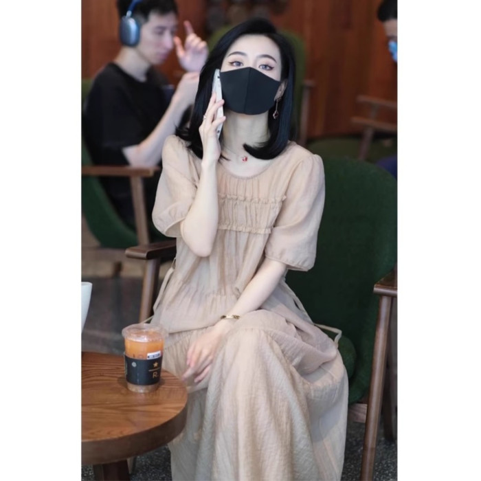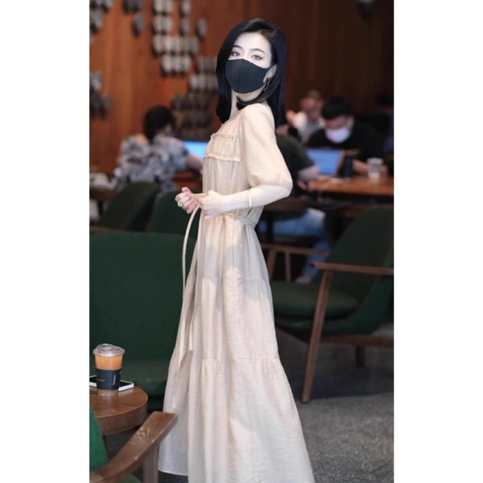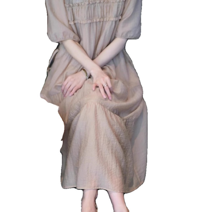歐洲站2025夏天新款淑女氣質穿搭茶歇法式連衣裙海邊度假沙灘裙女