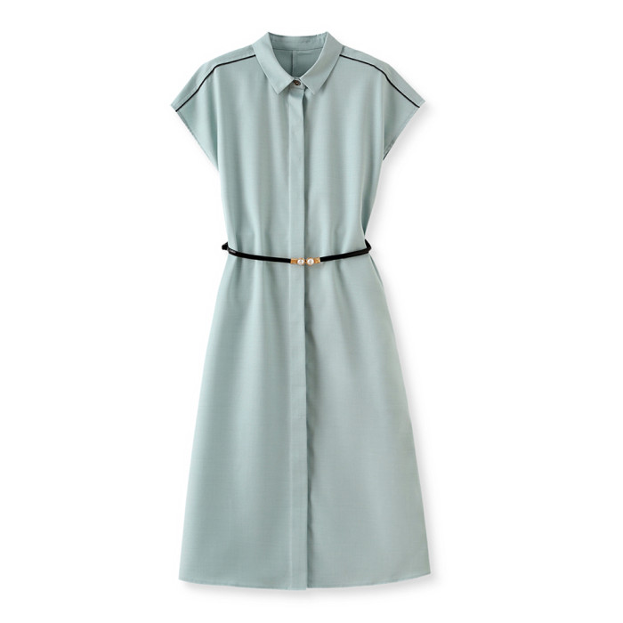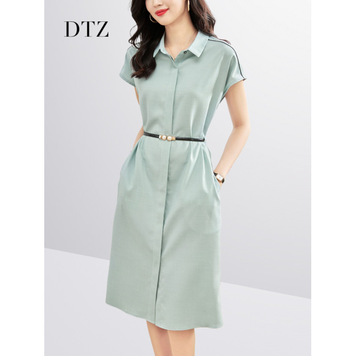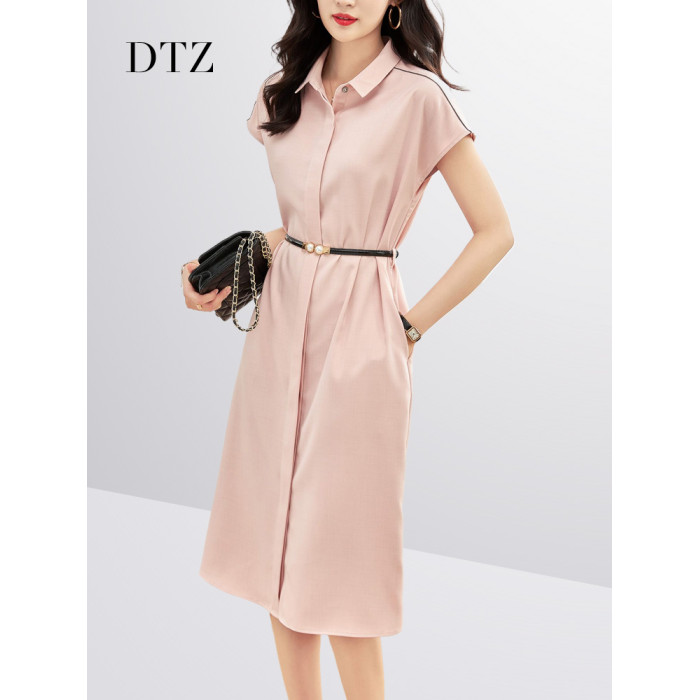 襯衫連衣裙氣質夏季新款高級感溫柔風純色通勤高級收腰名媛中長裙