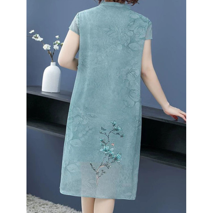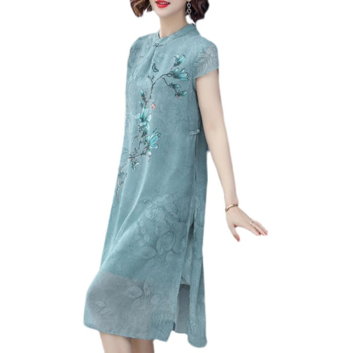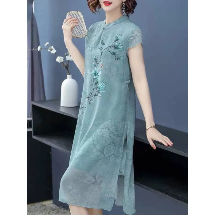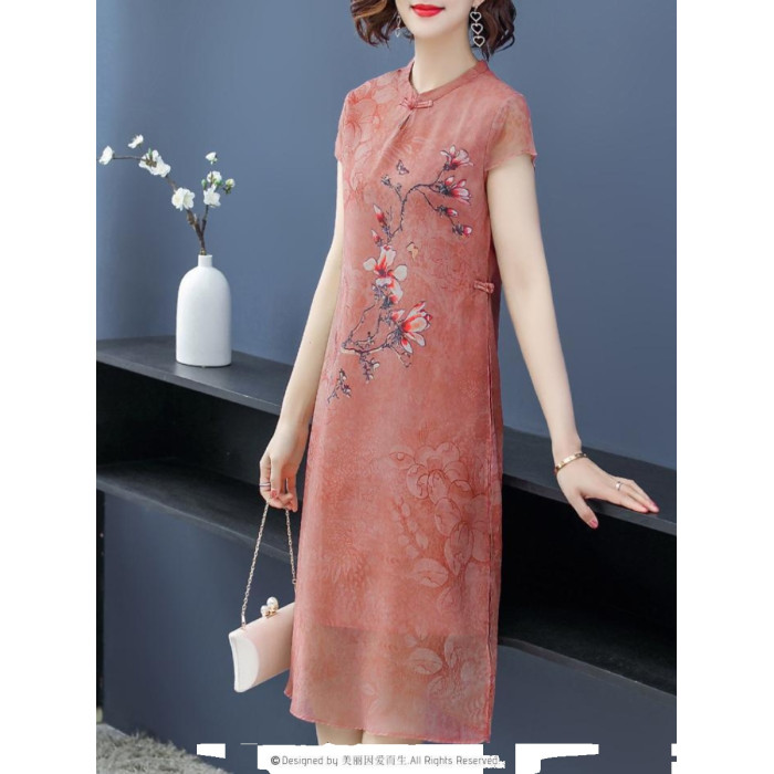 大碼民族風旗袍貴夫人濶太太時尚氣質寬松顯瘦加肥加大雪紡連衣裙