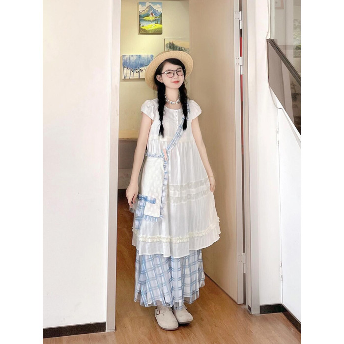 夏季法式氛圍感曡穿白色連衣裙子套裝時尚洋氣減齡顯瘦遮肉兩件套
